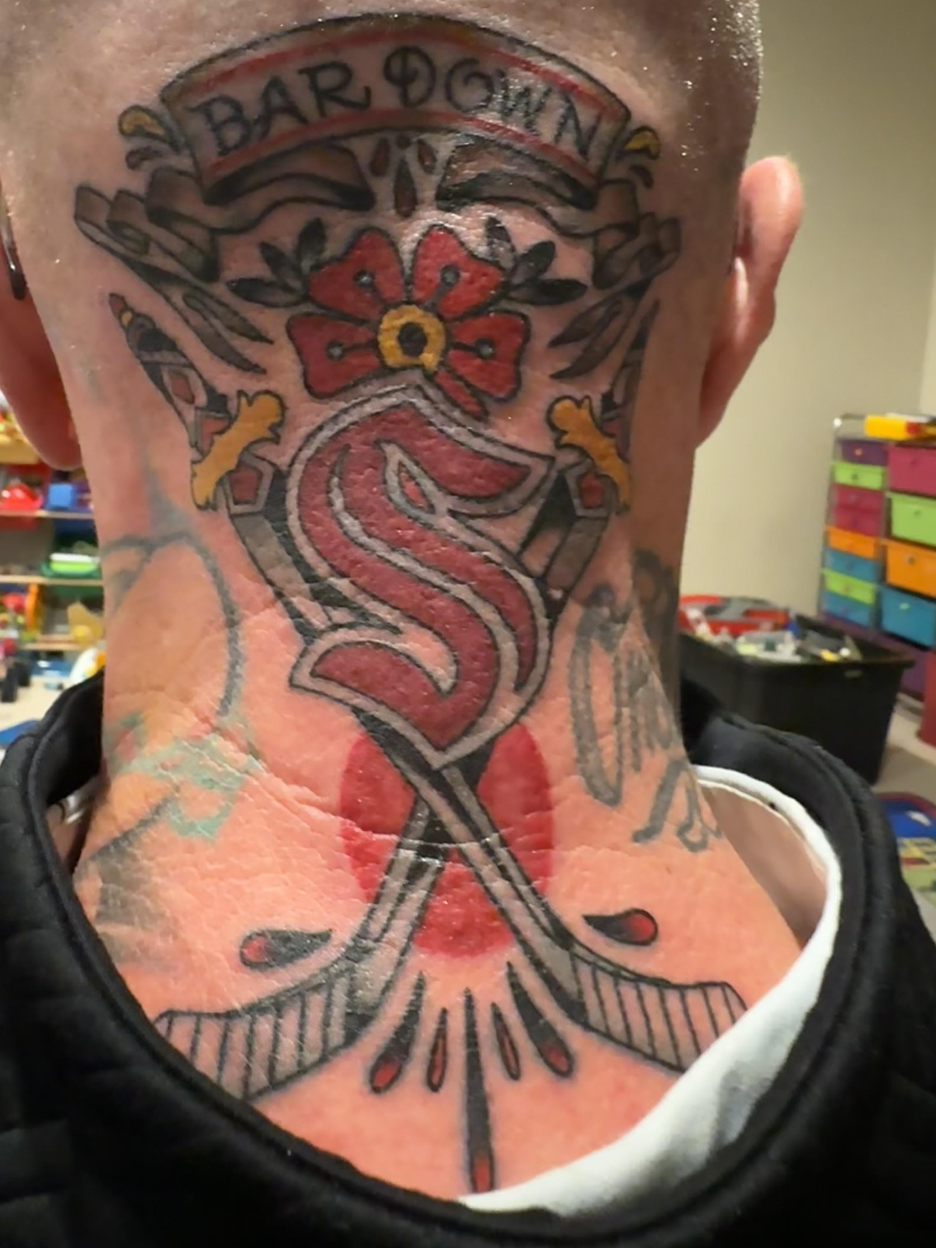 Fresh ink 😀 6 comments The sword hockey sticks are a nice touch That red is clean I bet that felt real good at the top. Whew. Nice! [removed] That is fucking fan commitment. Good on ya, wear it proud. No regerts Leave a ReplyYou must be logged in to post a comment.