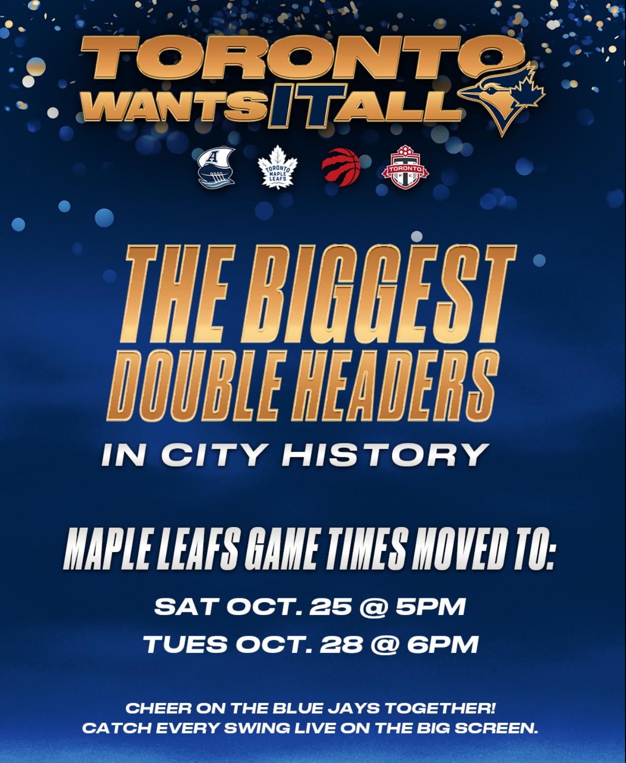 Leafs game times move to accommodate the Blue Jays World Series run !!!