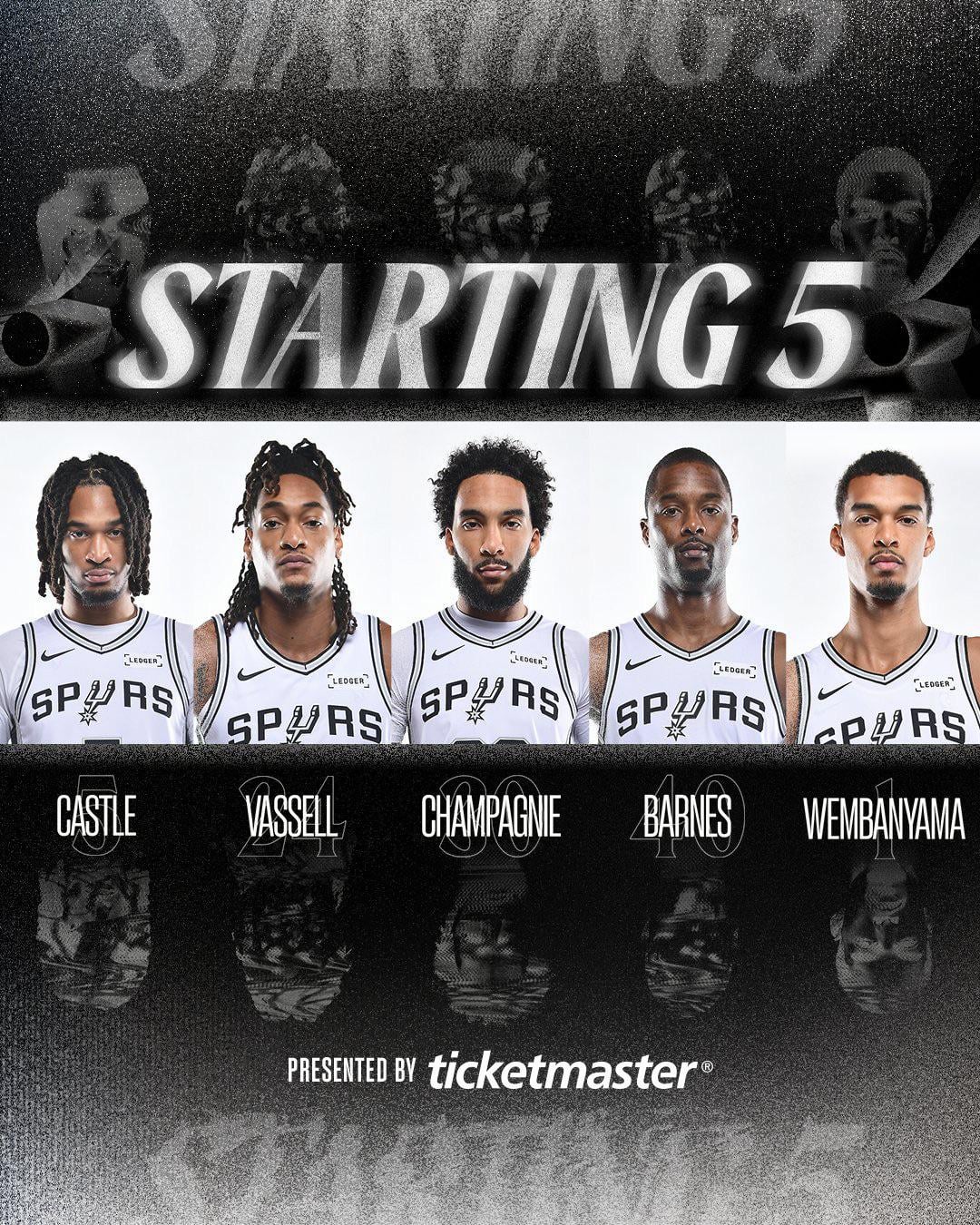 The starting five against Dallas Mavericks: Wembanyama, Castle, Vassell, Champagnie, Barnes