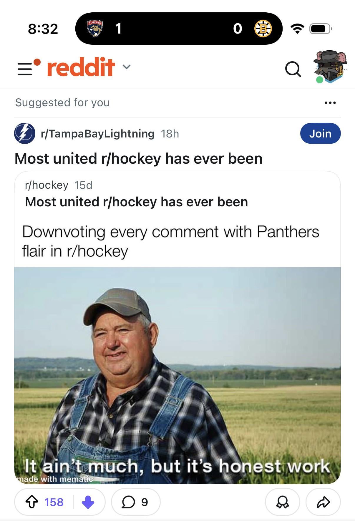 It’s a terminally online sentiment too. I’ve never seen much hate IRL for being a Panthers fan but hockey Redditors act like you’re Hitler.
