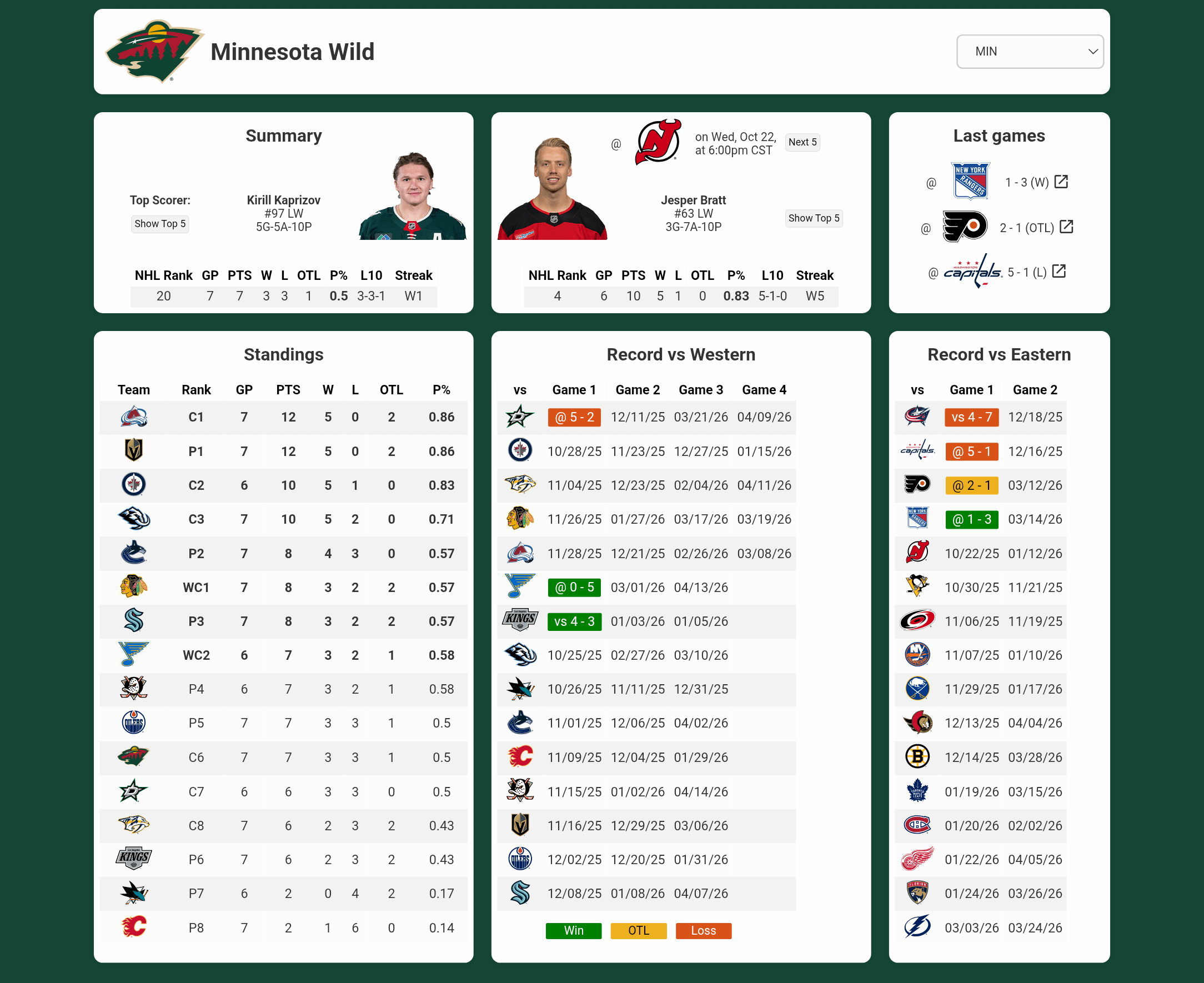 New Jersey is leading the East after a 5 game winning streak, with the last 3 being against Florida, Edmonton, and Toronto. The Wild definitely need the same persistence as last game and have to be first to the puck to keep Bratt, Hughes & the Swiss off the score board.