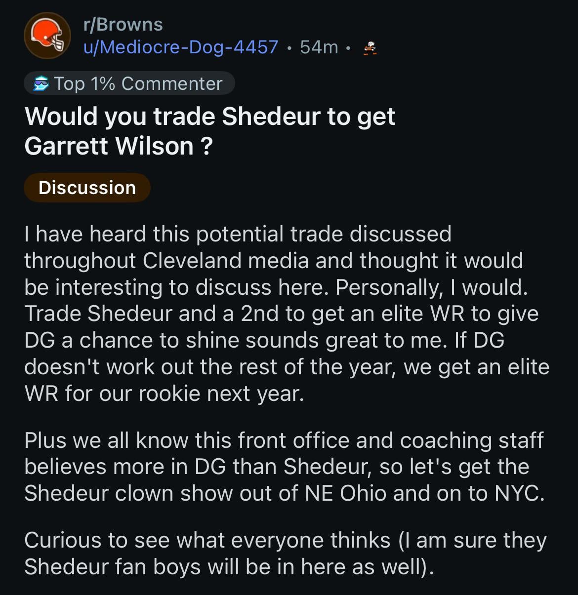 but nope, the browns sub is the stupidest. it’s dummies that think this trade will happen vs dummies who wouldn’t do the trade in the first place