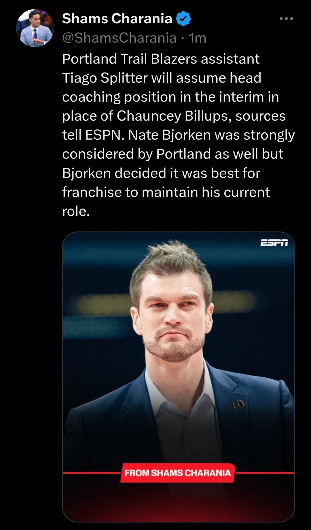 Happy for Splitter! Crazy situation in Portland but this could be a blessing in disguise for him to showcase his coaching skills. I wish him the best.