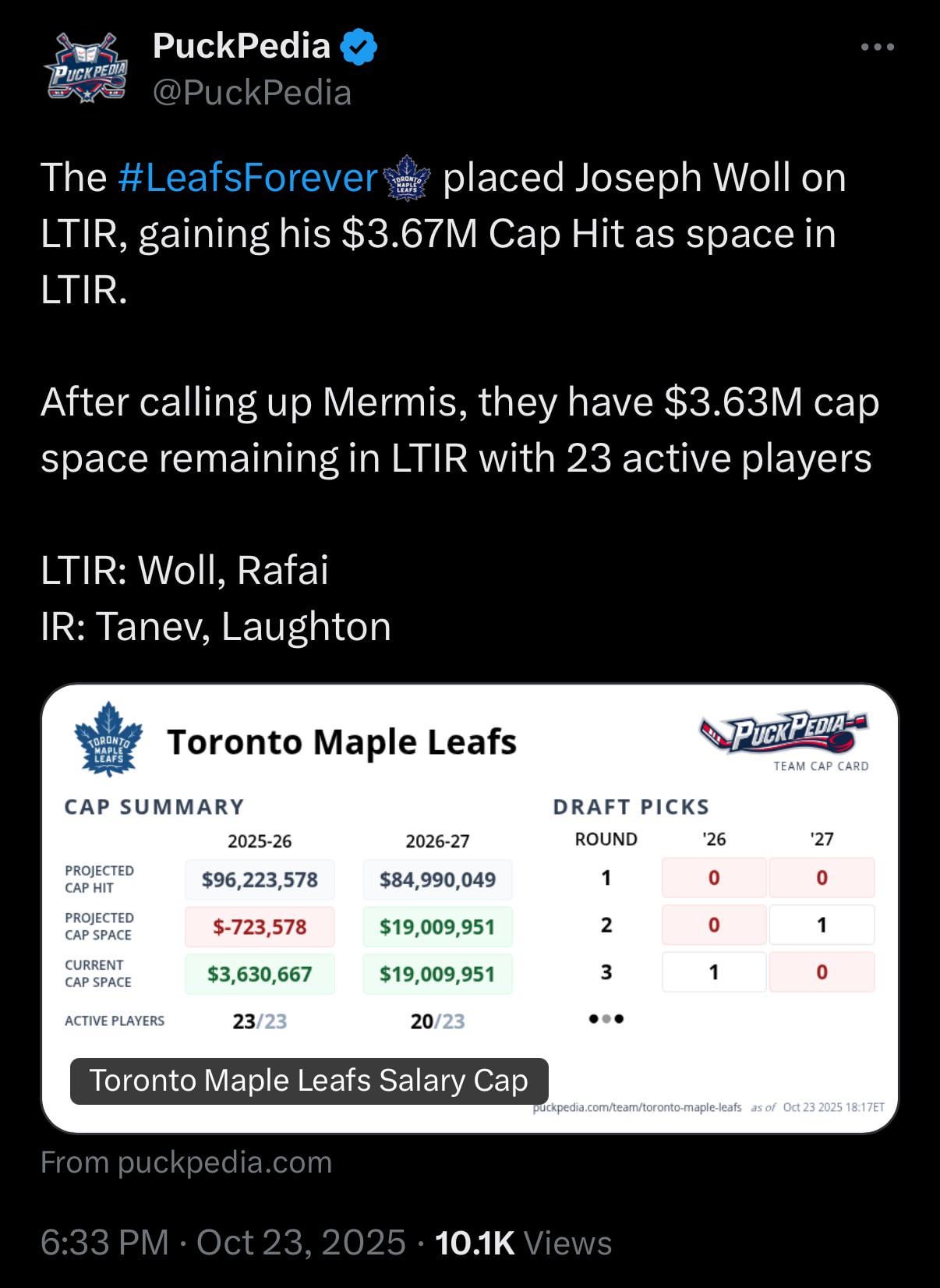 I think Woll must have some kind of serious medical diagnosis. Personal leaves of absence can’t lead to a player being placed on LTIR as far as I am aware. The league independently verifies that a player is indeed injured before they can be placed there. Would love to be wrong but I’ve never seen LTIR used for something like family issues, which is what it initially sounded like was happening.