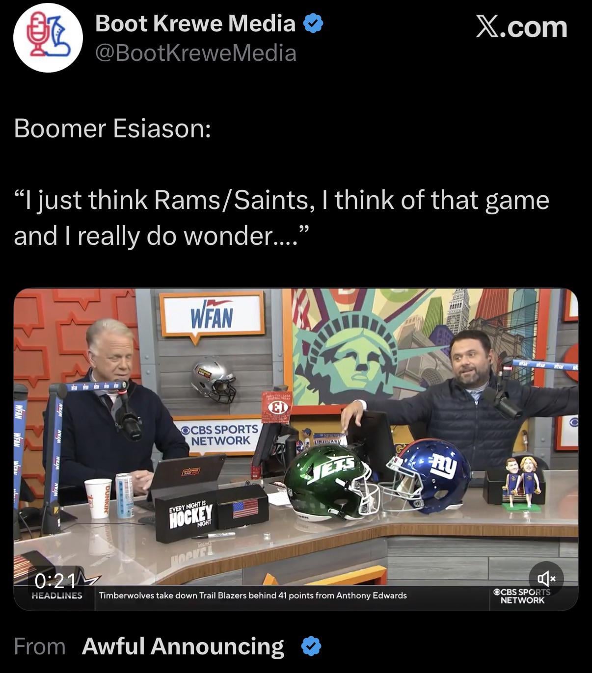 Listen, I get it. I remember the game, I remember how crazy it was. I’m not saying it wasn’t rigged because I know the NFL wanted their shiny new California team to get to a Super Bowl (that’s why I still despise the Rams). HOWEVER, at some point I think we need to stop harping on it every day. It’s not healthy for us as a fanbase. There has to be a point where it’s not our main topic of discussion every day. It is just kinda is what it is.