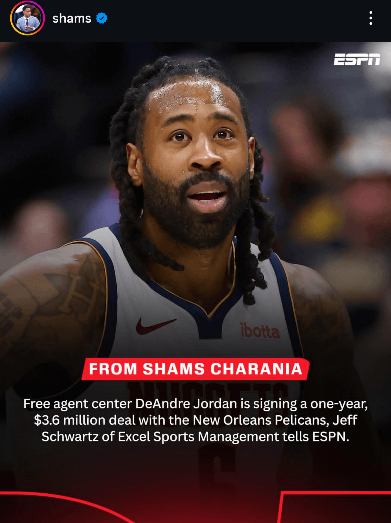 It is like getting an expensive assistant coach. He cannot play any meaningful minutes. All respect to DJ but we have seen what is left in his tank the last couple years……. I don’t really get this signing.