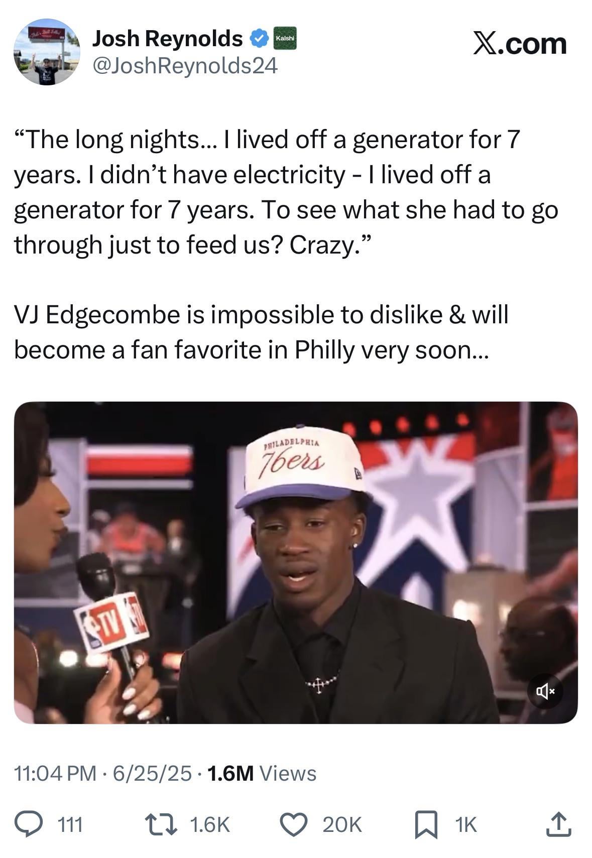 This was one of those situations where you could just tell quickly that they made the right pick. His family showed up to the draft smiling in full Sixers gear, he made this quote while being emotional immediately after being drafted, and he was wearing Sixers gear and with teammates IMMEDIATELY. He genuinely wants to be here and appreciates the opportunity, which is exactly what we want/need.