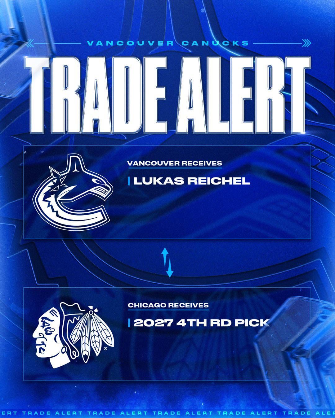 the hawks are the second team i follow and i have to say i really like this trade. i’m a bit surprised since last game he was moved to the first line because of how he had been producing in a bottom 6 role. i really thought blashill was giving him a last chance but regardless of what team he plays for, reichel has a lot of potential he just needs to play at a high level consistently. i’m not 100% confident he’ll pan out for the canucks but it’s a gamble i’m ok with.