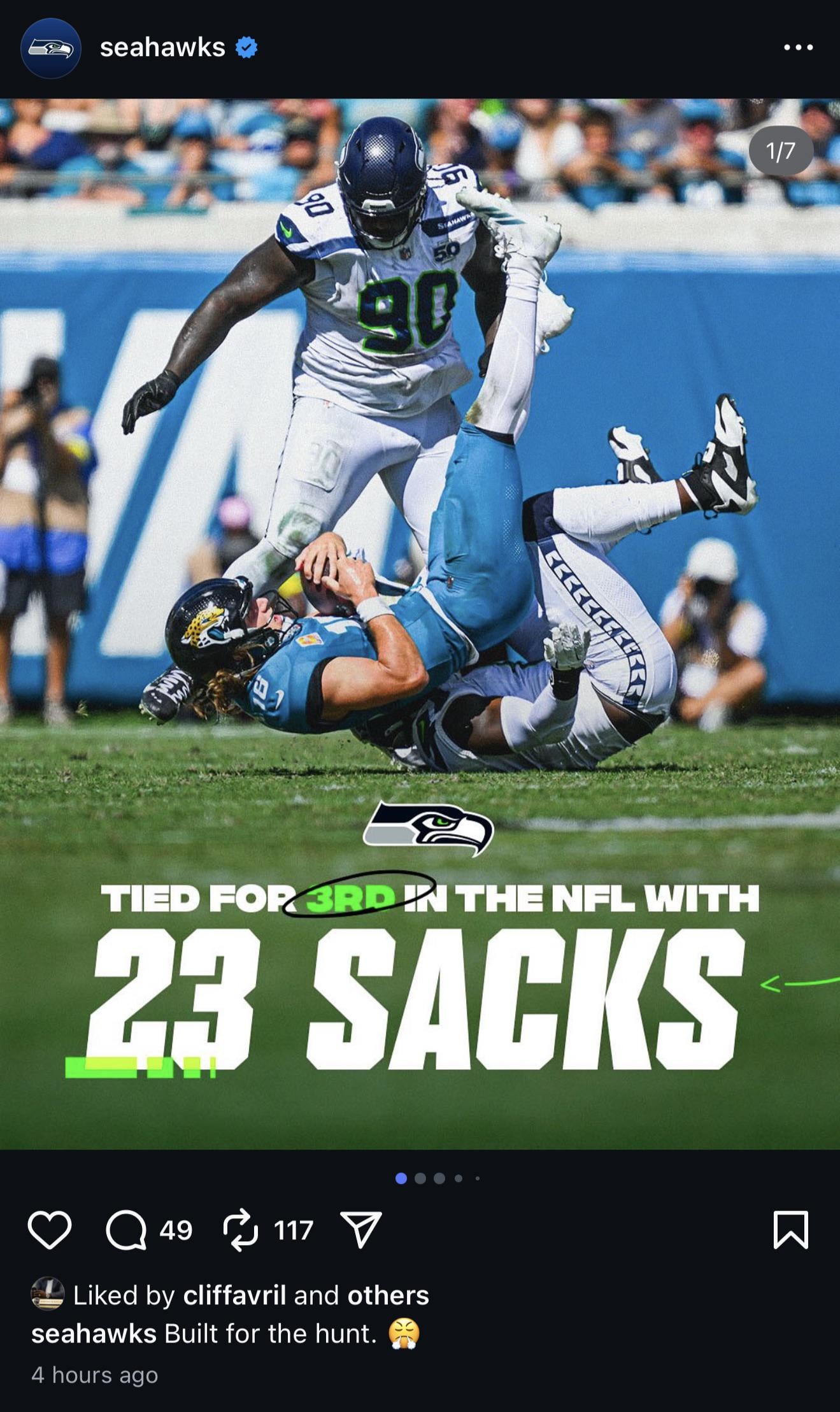 I think we are legit Super Bowl contenders, especially with the way are defense is playing. LFG HAWKS!!!