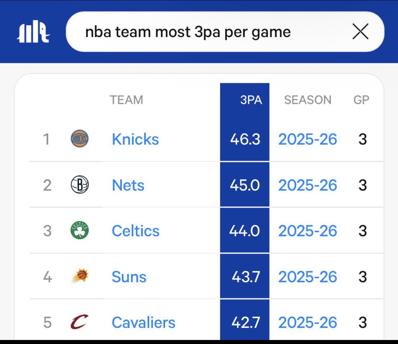 Lol @ googling (and posting) 2025-26 stats whilst only 3 games into the season. “Wild!”