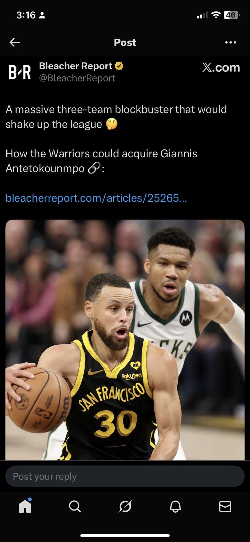 Click bait bullshit. Only way we get Giannis is sending Steph back the other way.