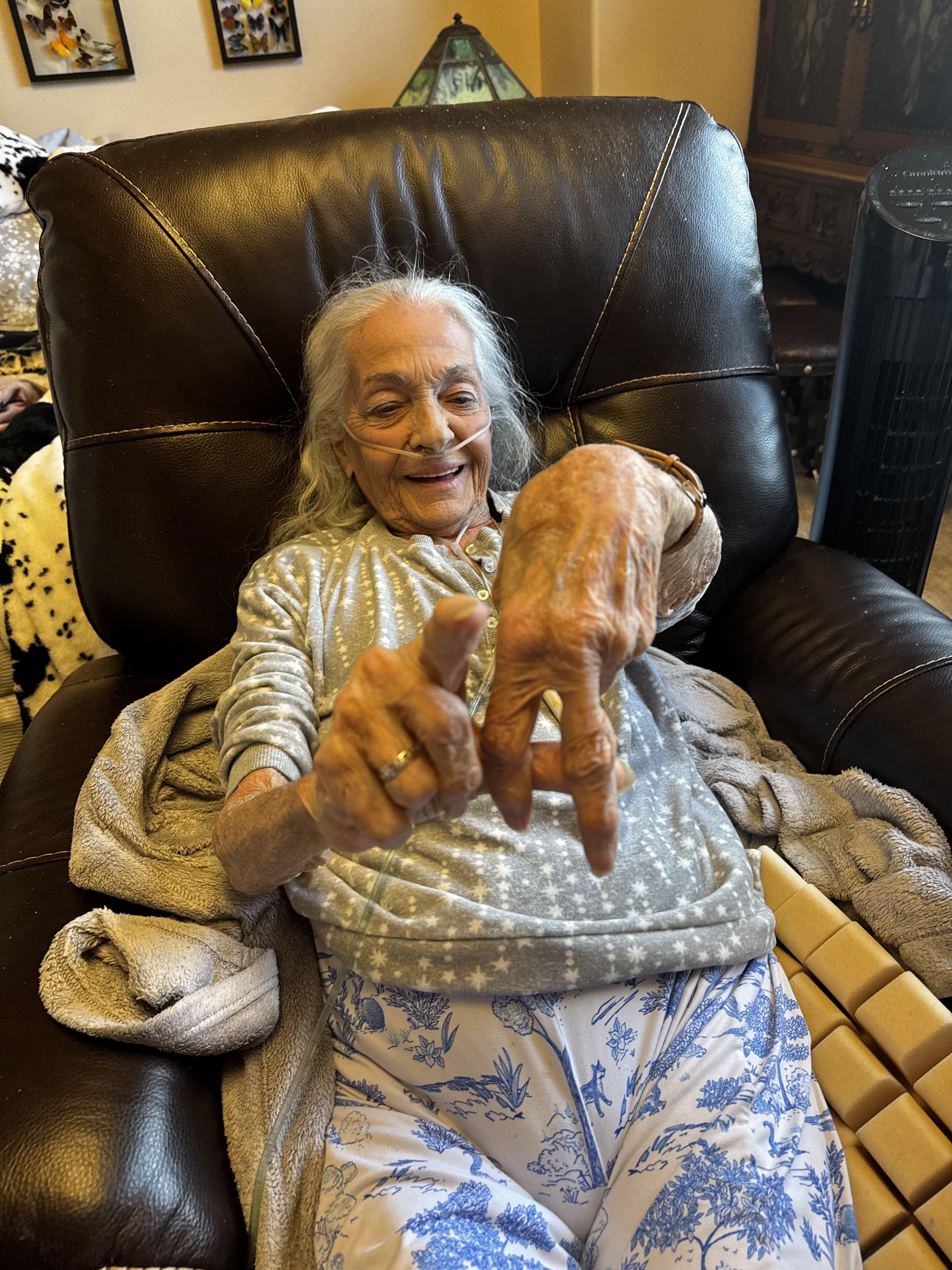 She has made it officially to another season! Here is her best “LA” gang sign uuuup haha. She is as bright as ever despite her COPD and being all skin and bones 😘.