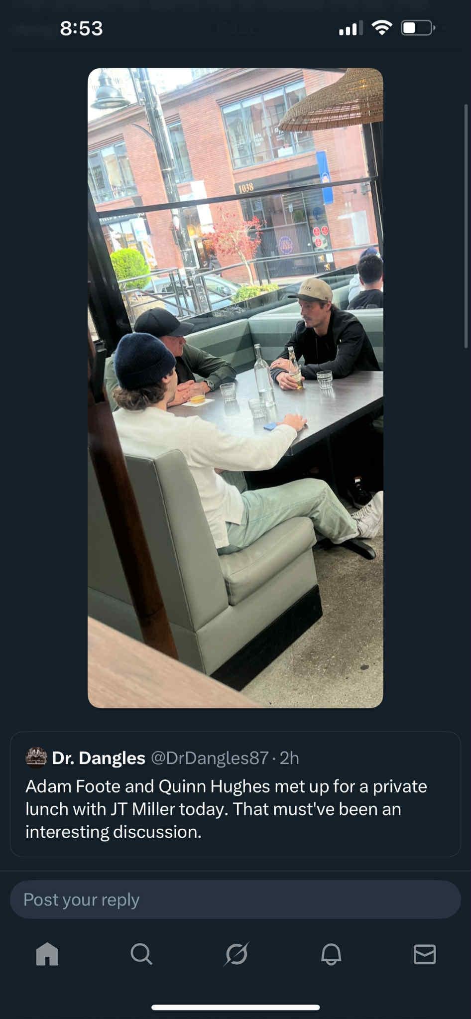 doesn’t really surprise me, quinn and miller are probably good friends off the ice interesting to see foote there tho lol