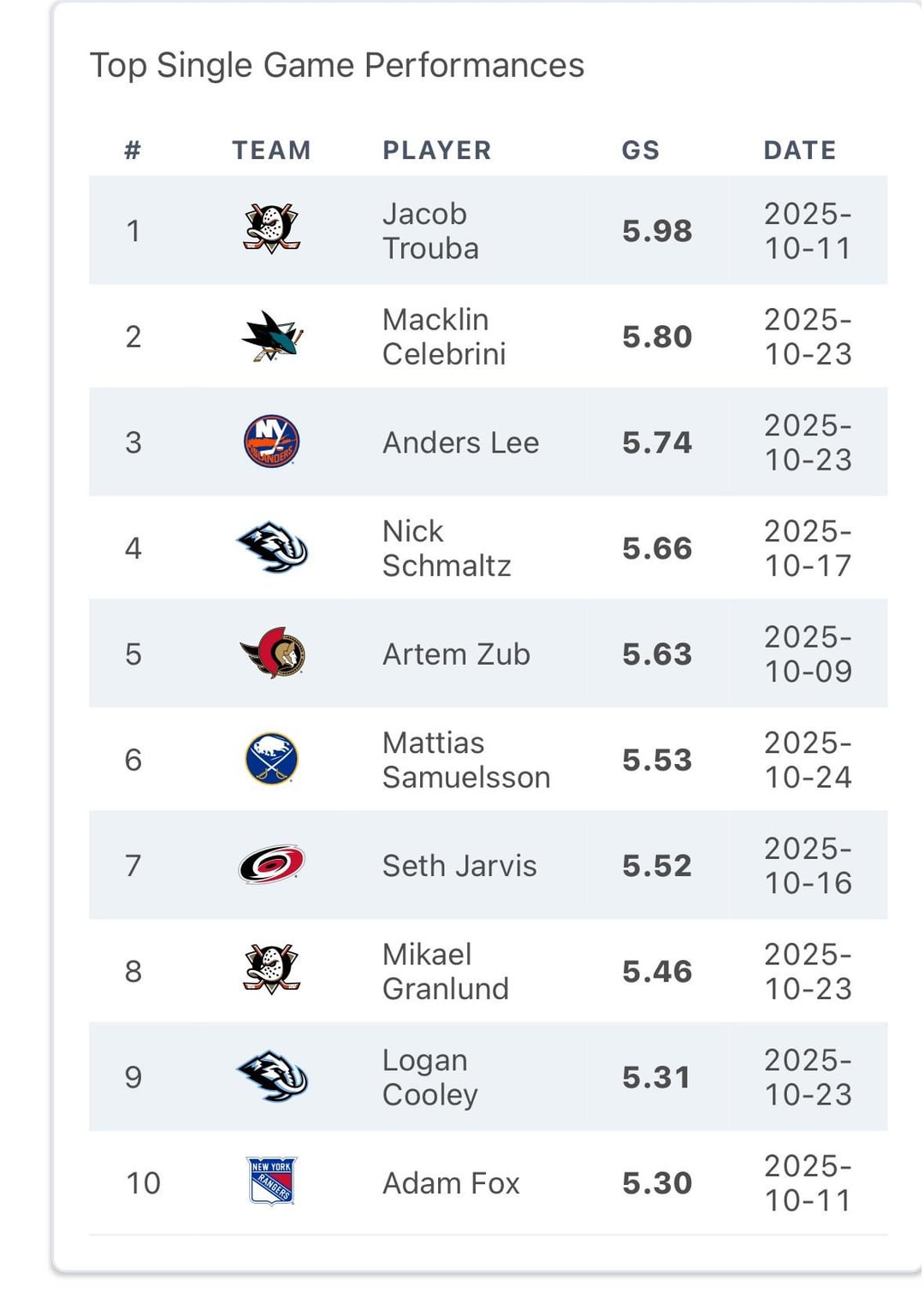 Hockey Stat Cards has Mattias Samuelsson with the 6th best game of any player this season last night