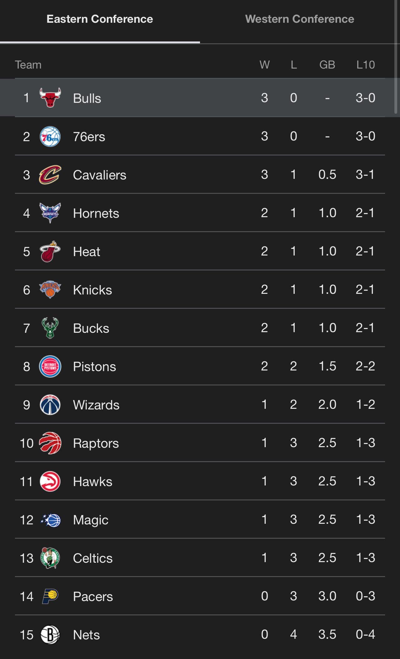 I like seeing the Bulls at the top and Celtics at the bottom. Reminds me of the mid to late 90s.