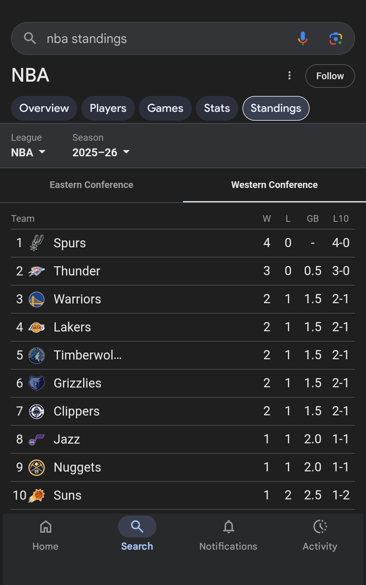 Thunder also 4-0. Looks like we’ll have to do it ourselves when we match up with them