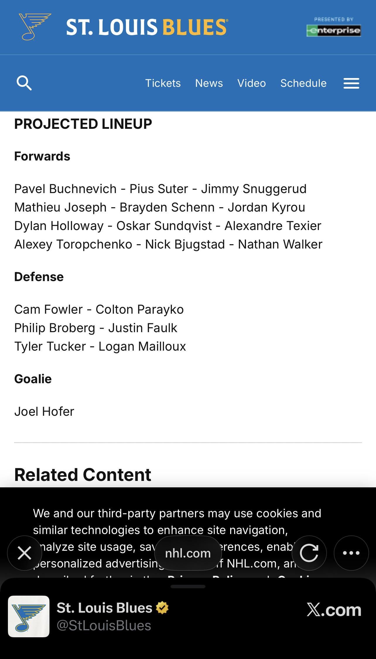 I would like to see Buch and Holloway switch places on the forward lineup but it's the Defensive pairings that surprise me… To no surprise Cam Fowler is not looking like he did in the playoffs for us. He looks pretty damn bad honestly and he is still 1st pair with Parayko instead of Broberg who looks fantastic or at least far more competent than Fowler as of late.