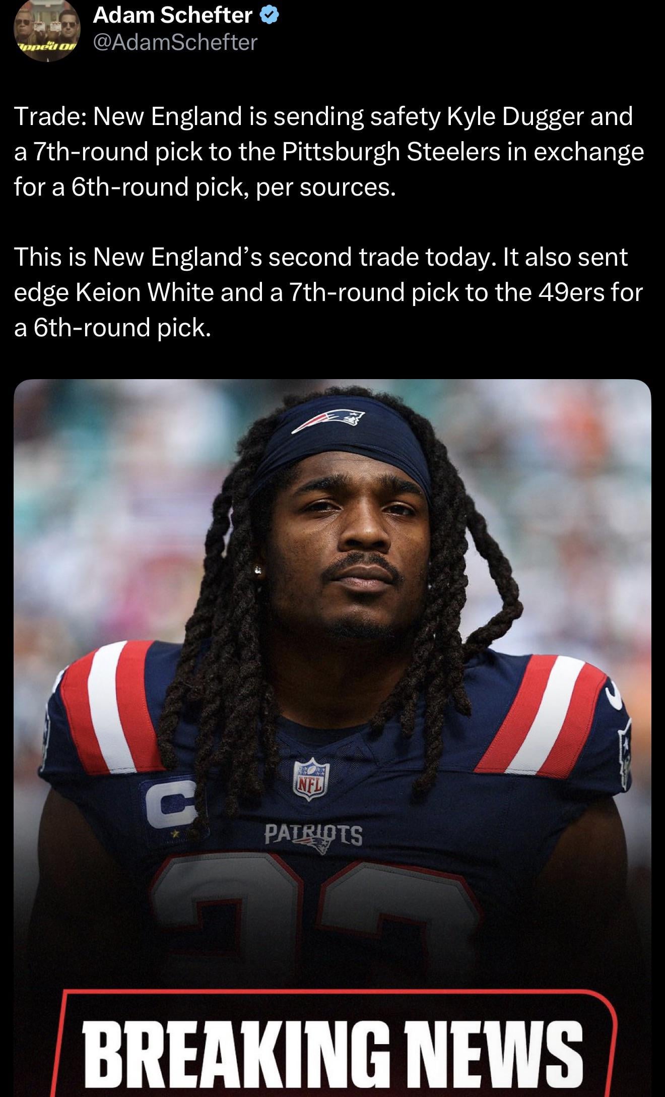 [Schefter] Steelers Acquiring Kyle Dugger From New England