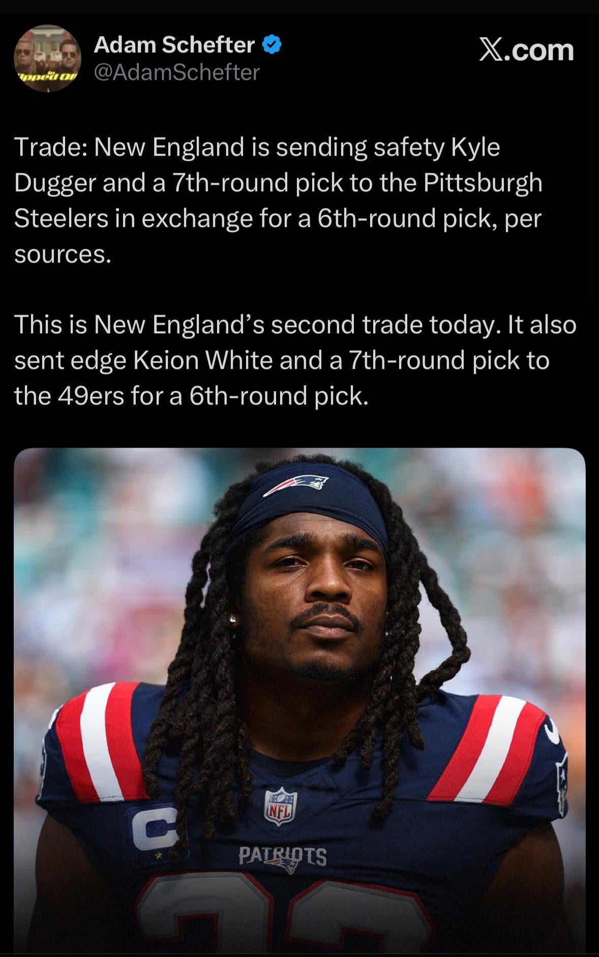 18. New England traded a backup in Dugger that has a contract of 4 years/$58 million. And Keion White became a backup with significantly reduced snap counts. Patriots probably received as much value as they could freeing up some money. Cut them loose, get some draft capital and keep improving the team with players that fit Vrabel’s vision/scheme. Future is bright!