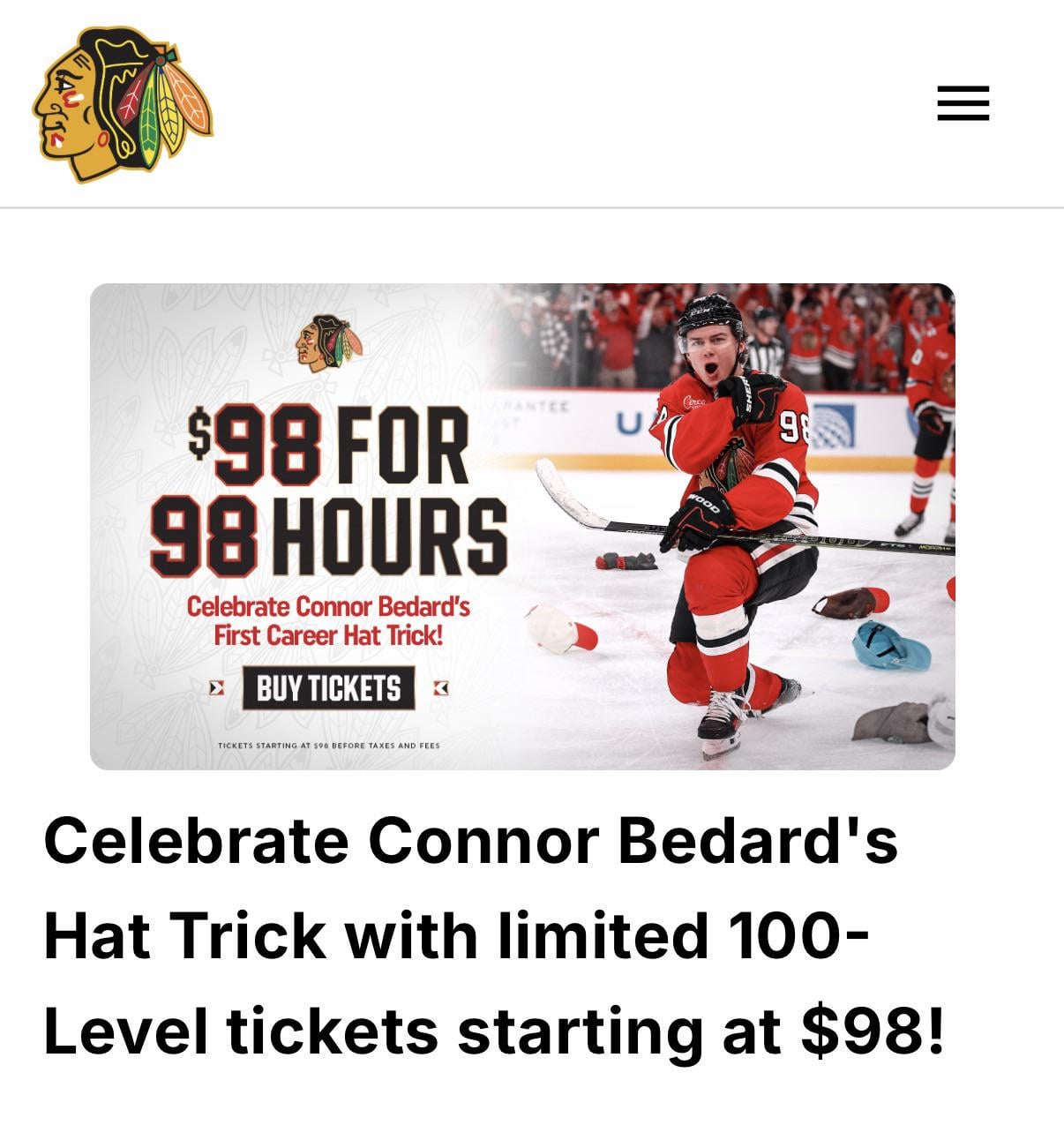 If you’re a season ticket holder you might be a little pissed at seats being devalued this early in the season despite our on ice success… but if you’re not a season member and looking to score on future games, you might be pretty happy to see this sale that should last for 4 days. See the Blackhawks app for details.