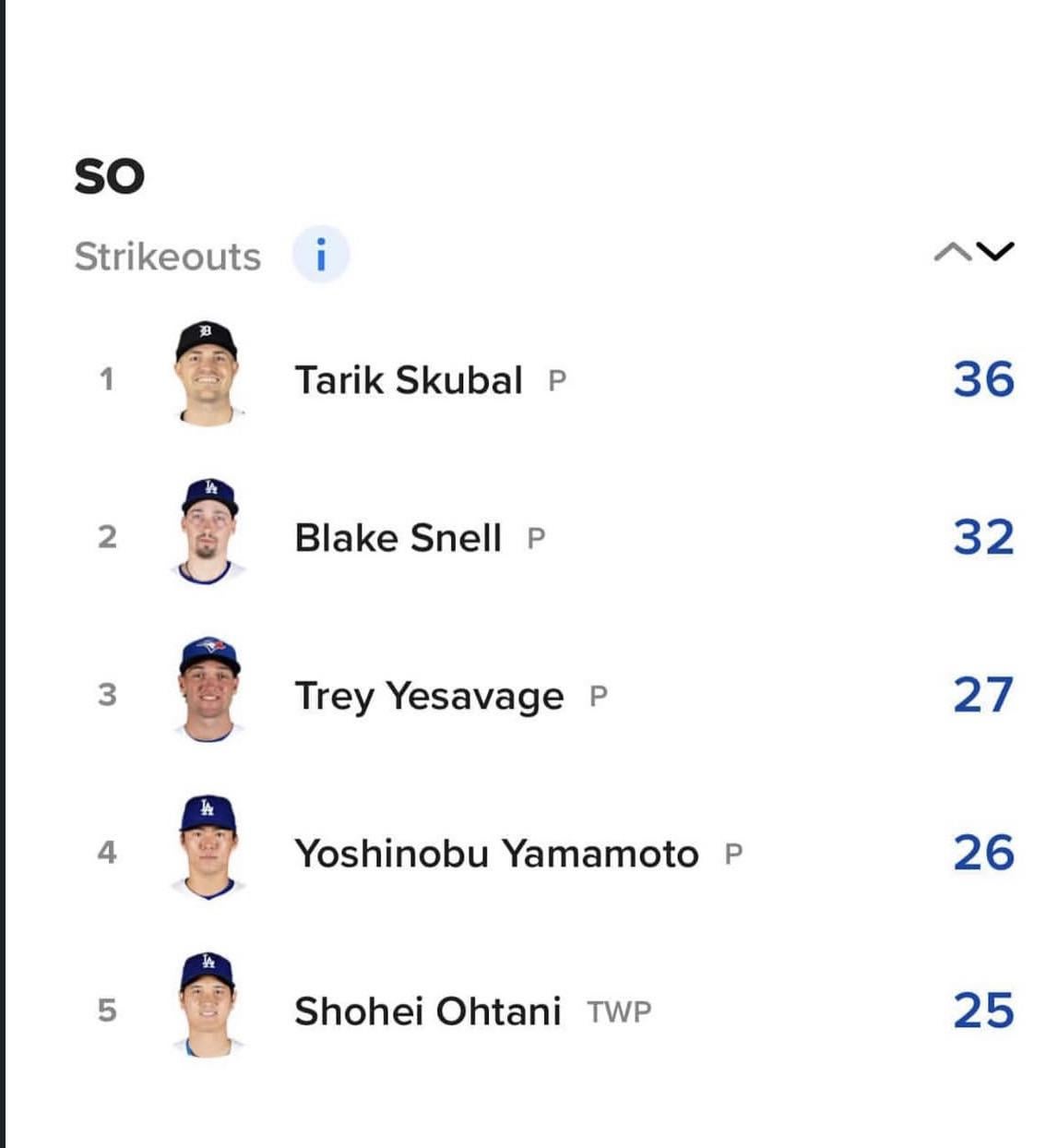 Tarik Skubal leads the MLB in post season strikeouts despite not pitching since October 10th