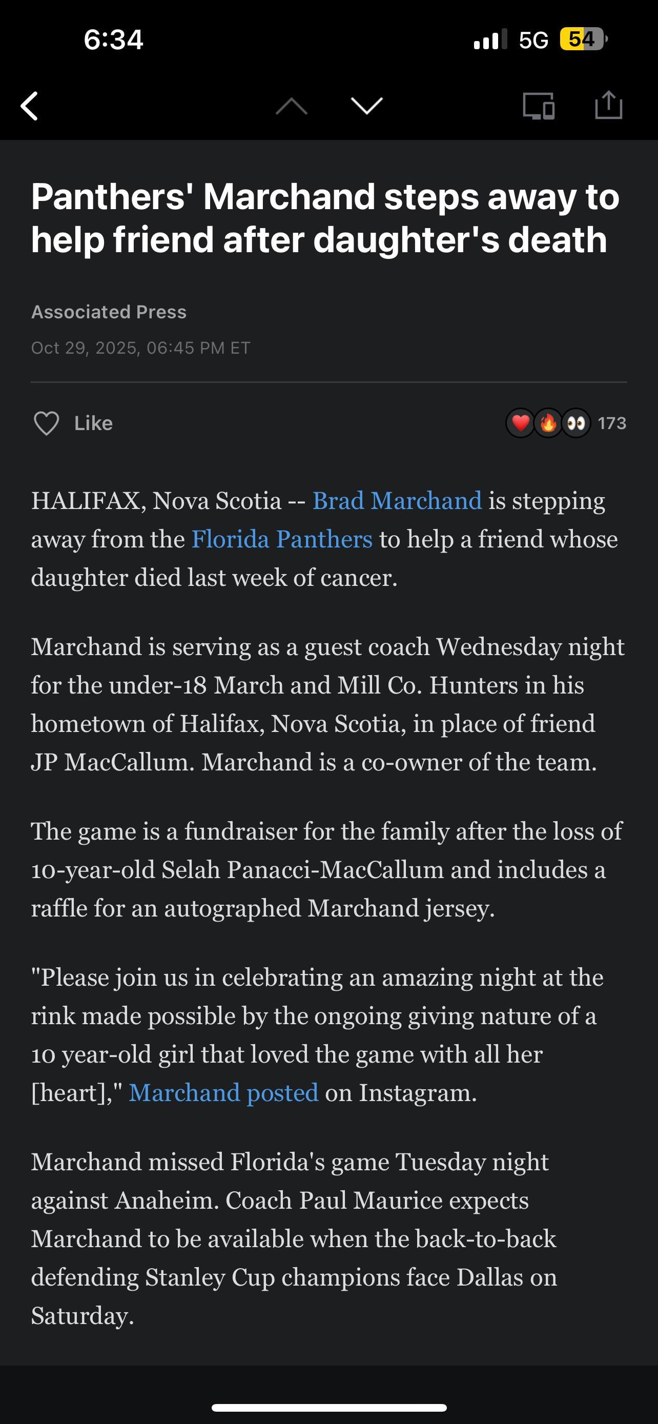 https://www.espn.com/nhl/story/_/id/46774289/panthers-marchand-steps-away-help-friend-daughter-death
