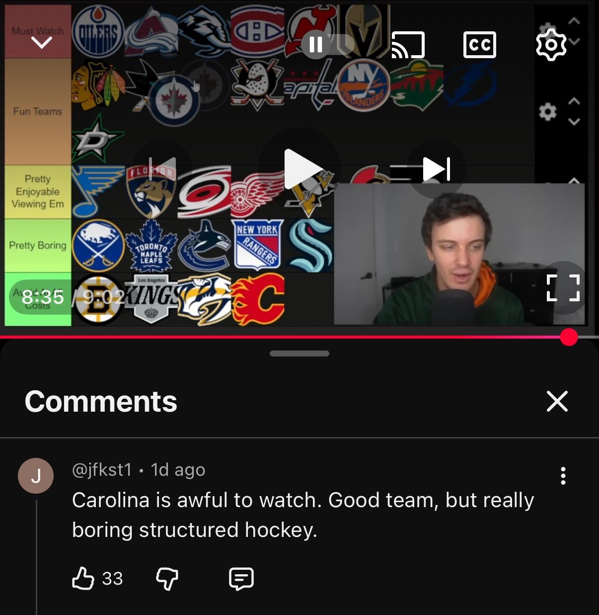Now obviously, I do expect bias since this IS the Canes subreddit. But watching the Canes play these last couple of years have made me fall in love with ice hockey. I don’t really watch other teams play that much so I don’t know how they compare to Carolina. But I personally find the Canes incredibly entertaining and fun to watch