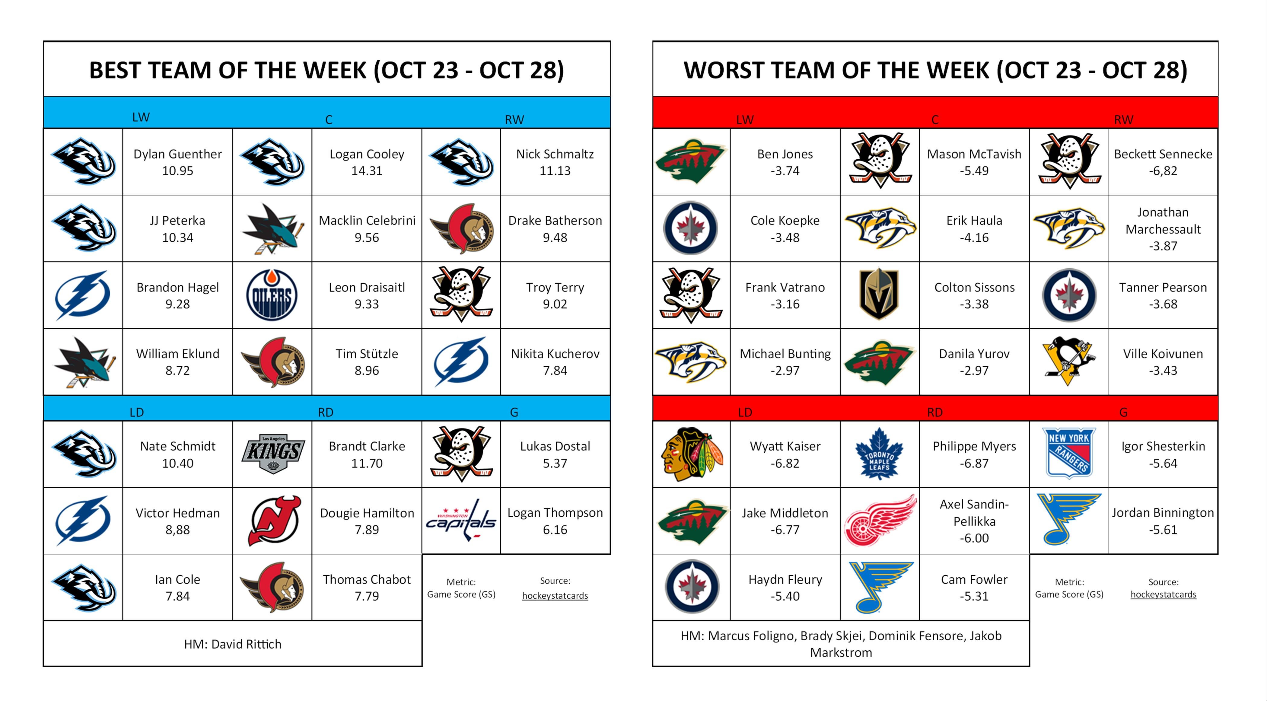 Best/Worst Team of the Week (Oct 23 – Oct 28)