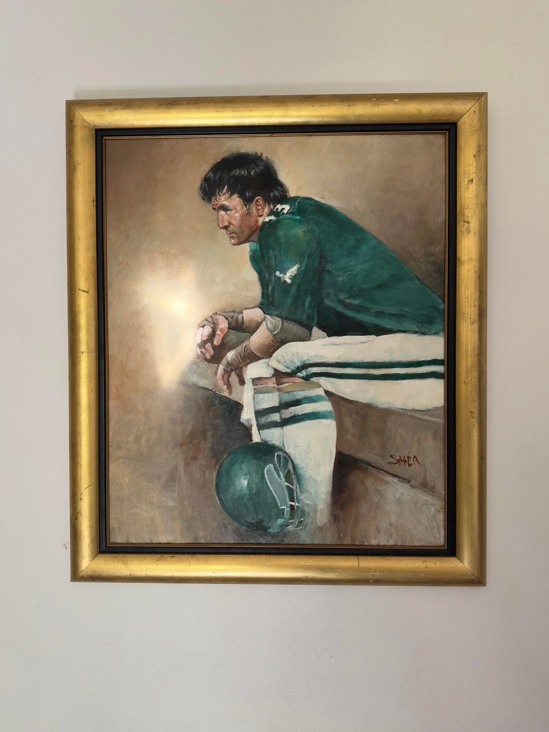 But, yeah, that’s a mystery. I originally thought it was maybe a Tommy McDonald or an Ernie Barnes enthusiast (look up Ernie Barnes “The Bench”, this is a similar style). But both those artists signed their work, no idea who “Shea” is (or is it “Sher”?) I can’t tell.