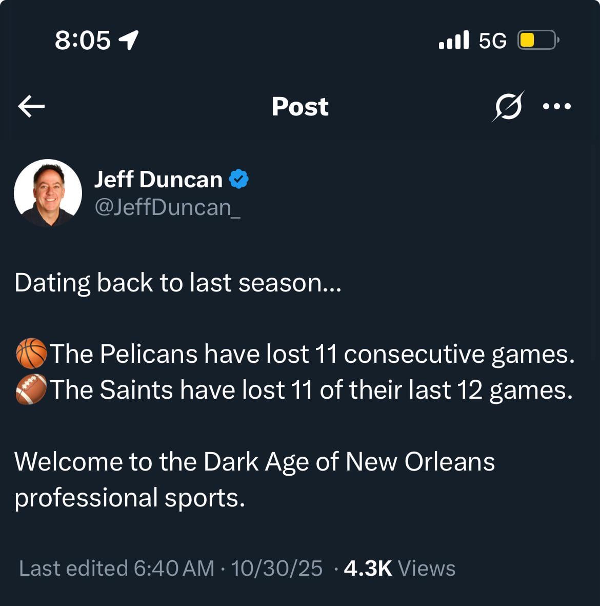 I’m sorry, did everyone forget the Saints before 2006? This is nothing. Calm down