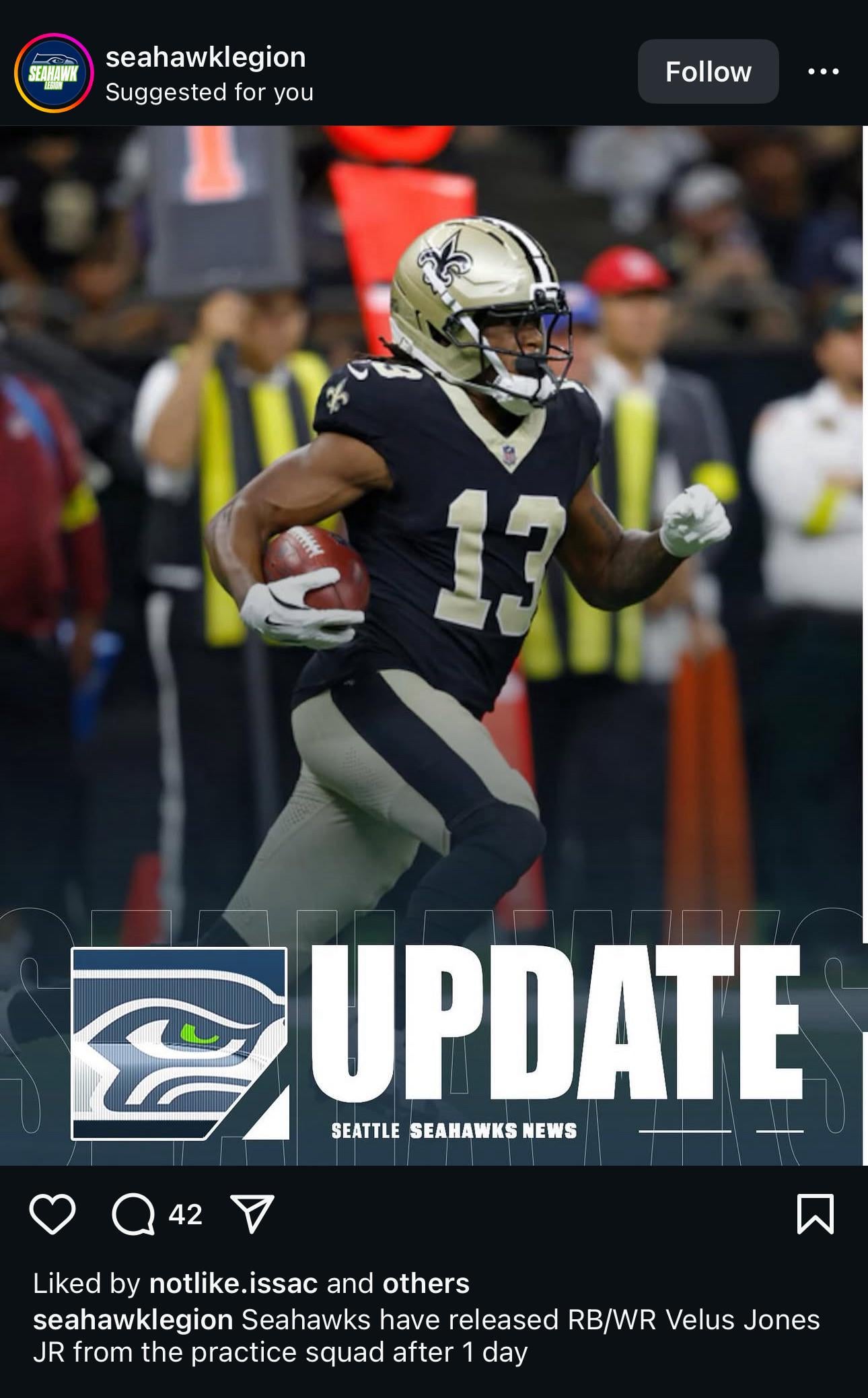 Velus managed to get through one (1) whole day in Seattle before getting cut. Poor guy man, hate to see it happen to such a good dude.