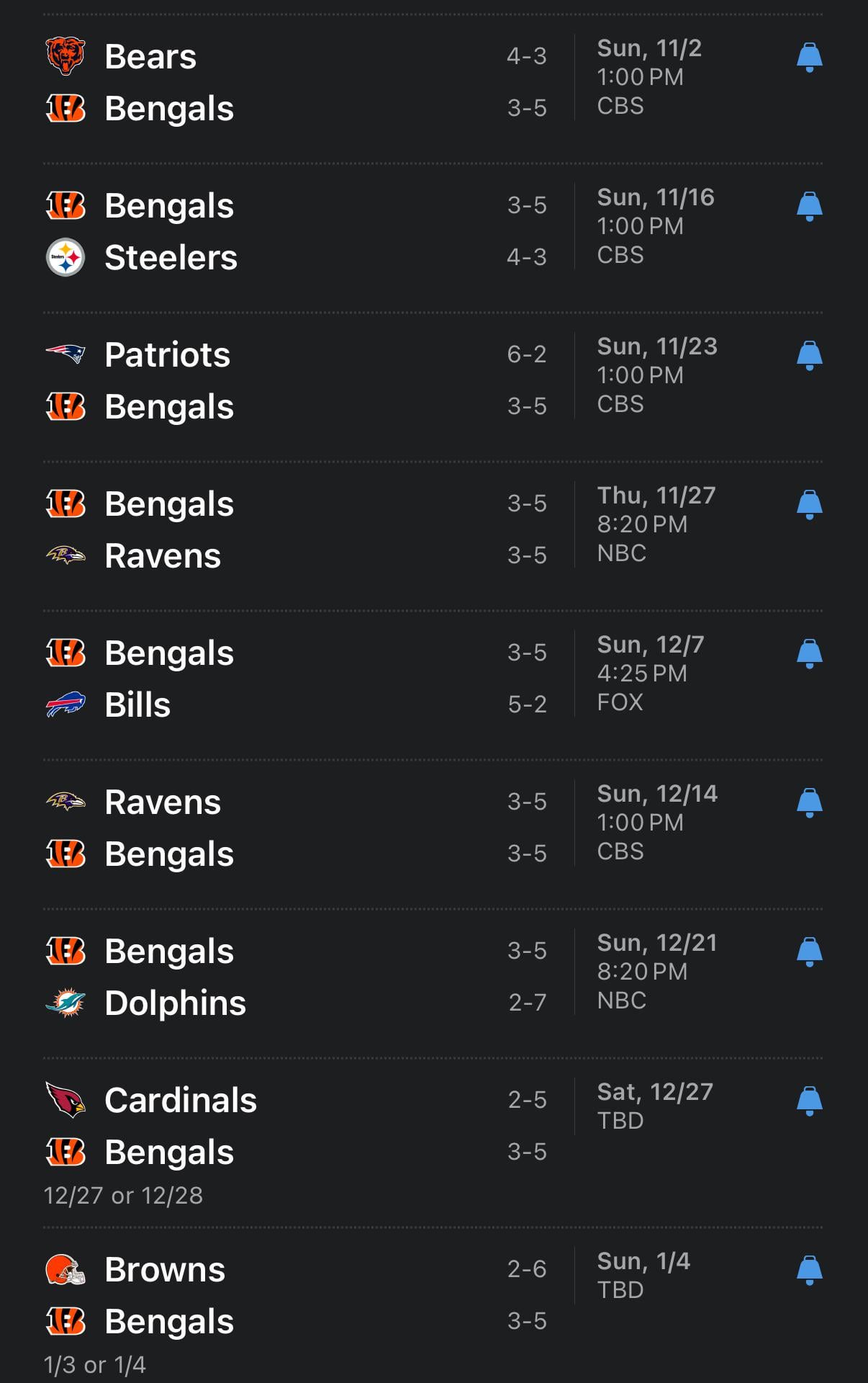I see 3 wins on that list. 6-11 season. I see the Ravens and Steelers both finishing at 9-8. It’s a shame we’re so bad because this would have been a pretty easy year to clinch the division.