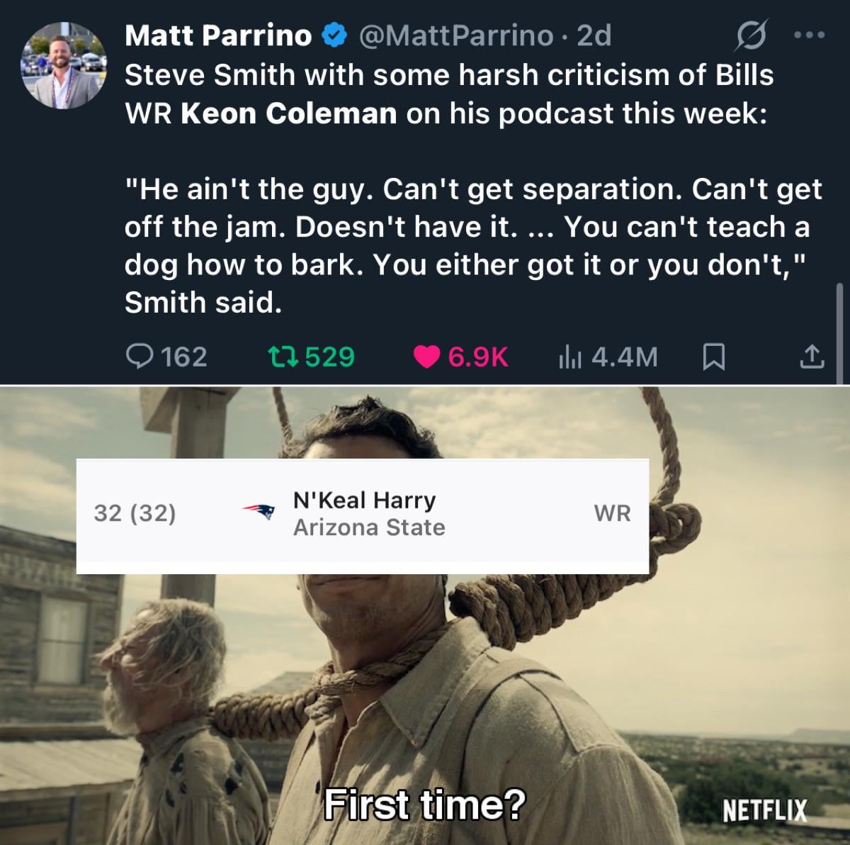 Keon Coleman is 10x the player Harry was. Only question is if it’s ten times zero.