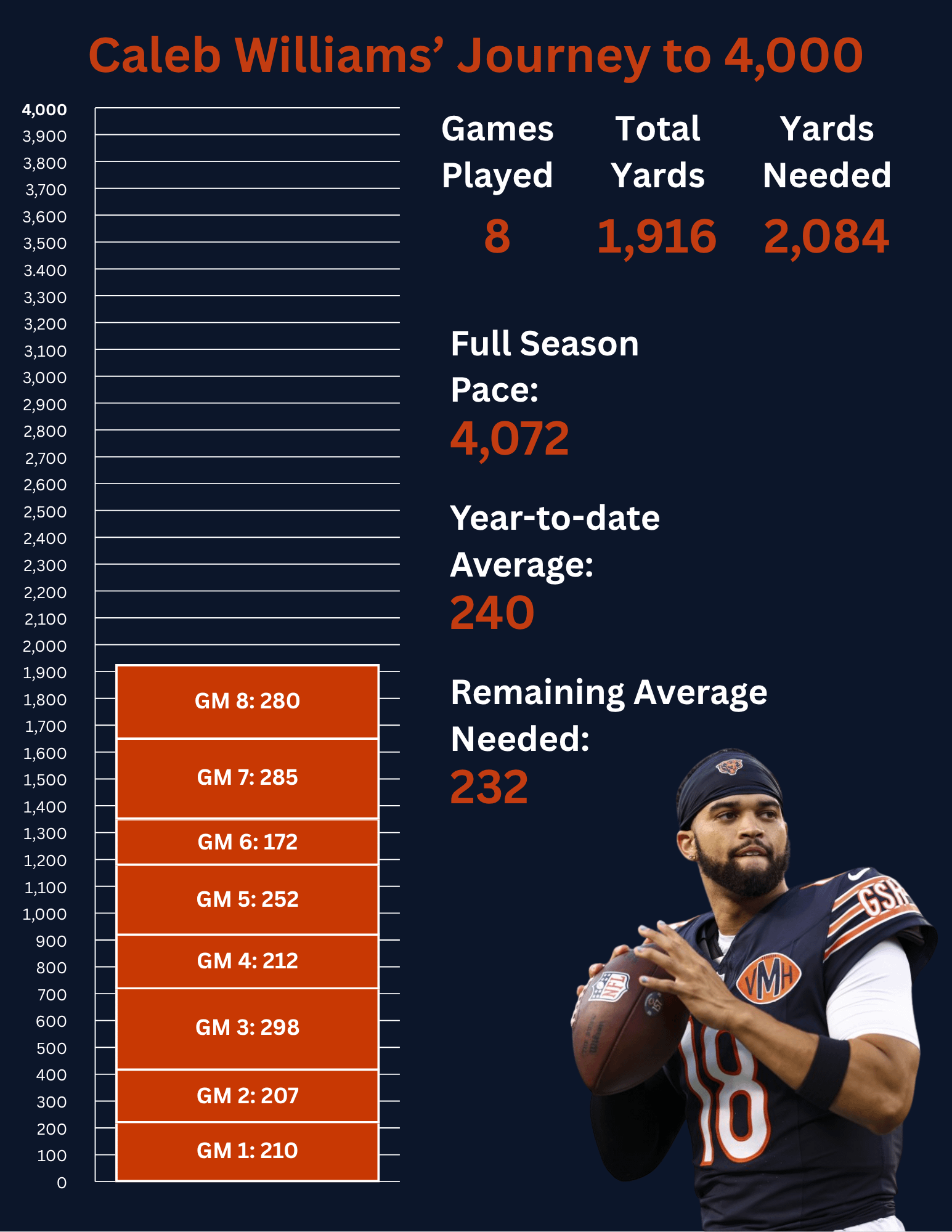 7. Right now, Caleb is second in passing yards per game average in Bears history. Between Cutler and 2 yards a game above Kramer.