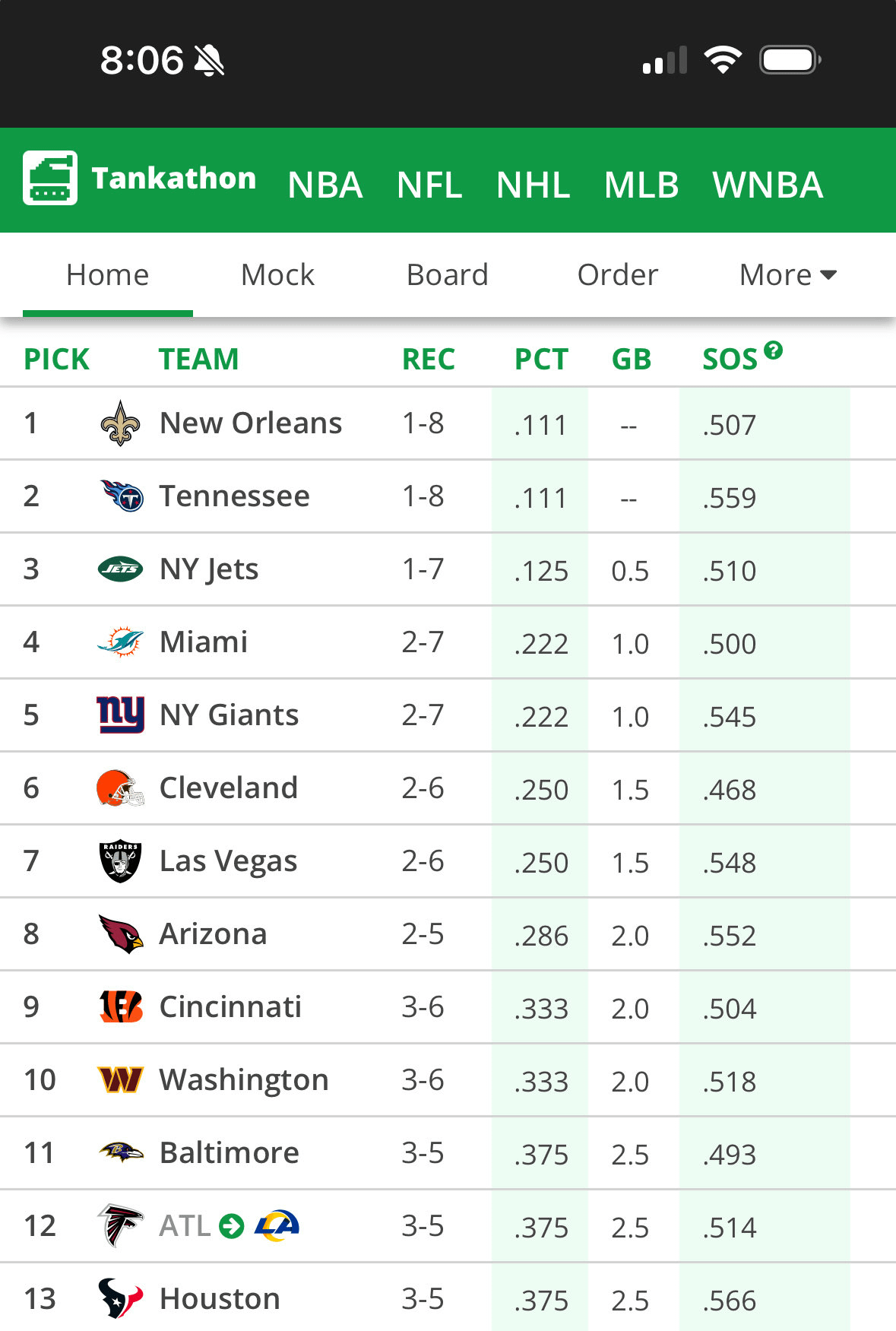 Best we’ll get is 8th. Lot of crappy teams there. Only Arizona, Cincy, and Baltimore should improve their records.