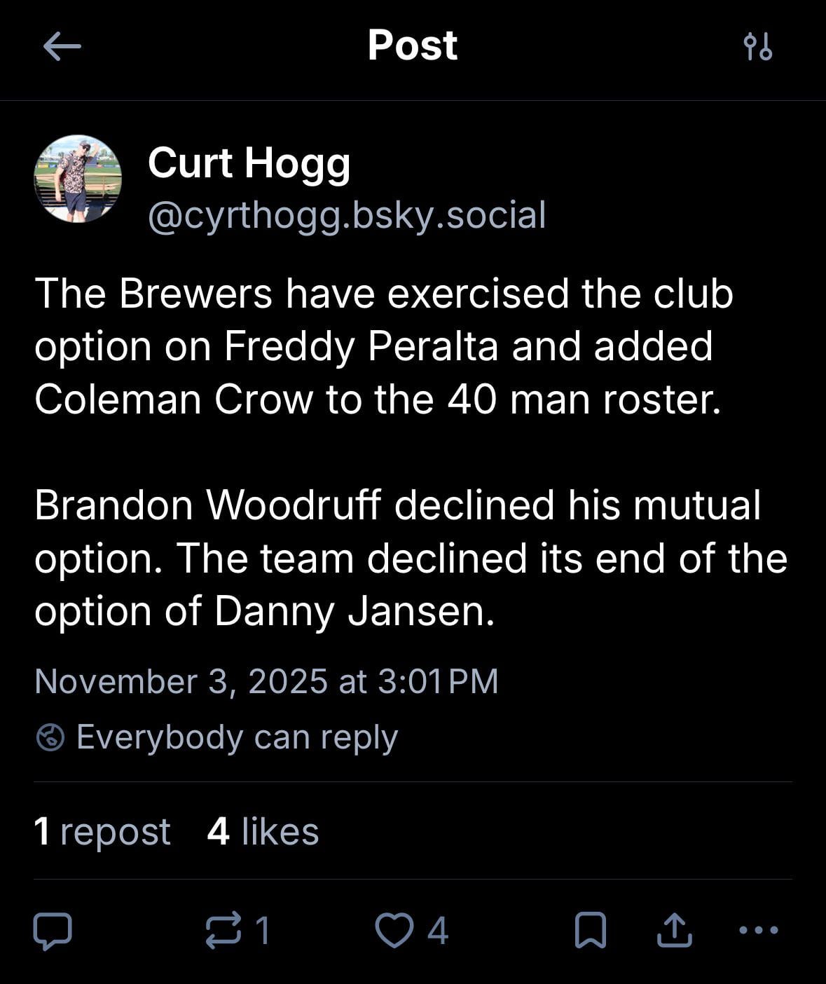 3. I don’t think any of this is super surprising. Hoped Woodruff might have stayed but at this point, if you’re him I think you try to go get the bag before there’s no other chance. Still think the Jansen move made next to zero sense. It’ll be interesting to see what happens with Peralta either way dudes gonna make some money next year.