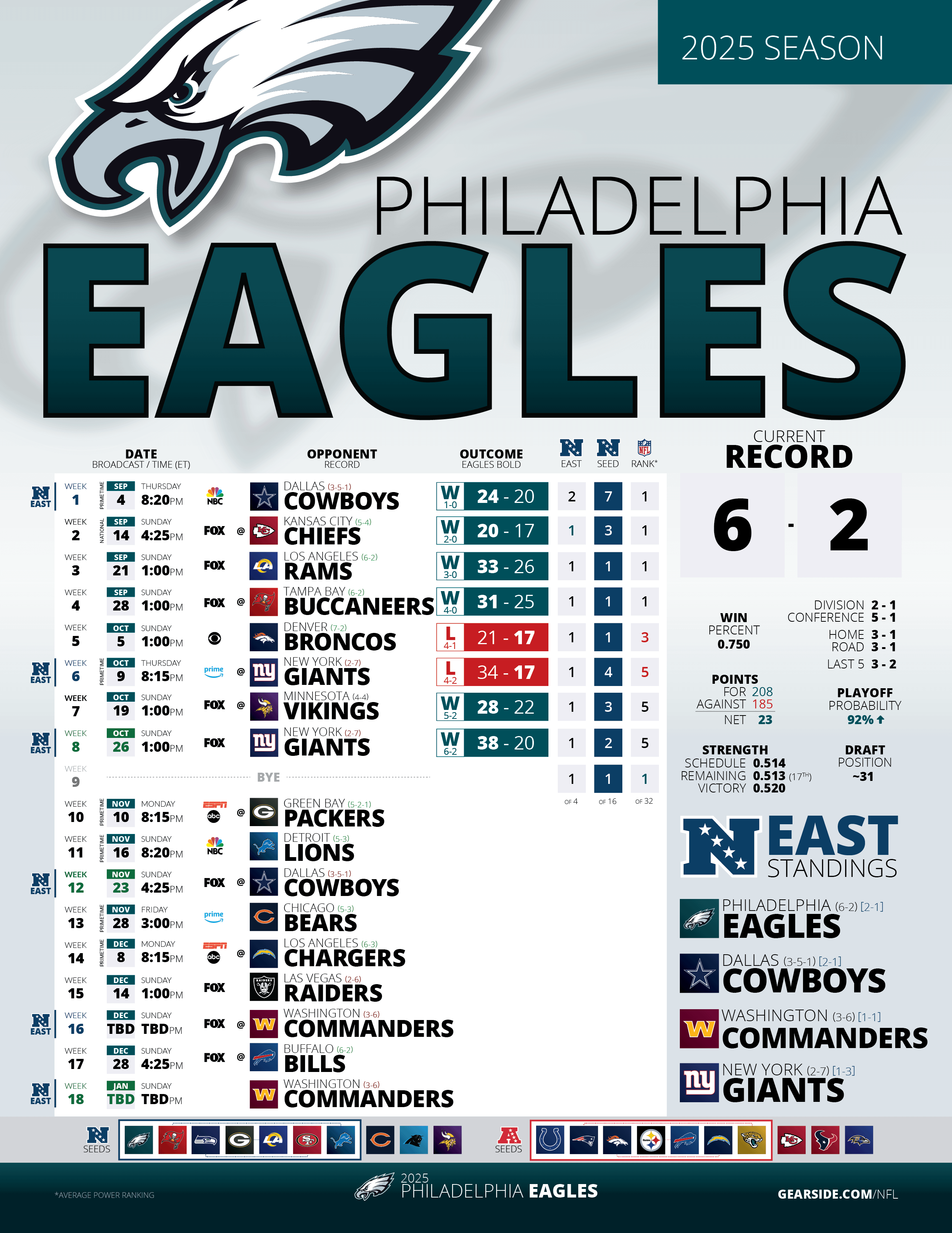 It’s unlikely, but with 3 wins, Washington losses to Detroit and Miami and a Cowboys loss on Thanksgiving, the Birds could clinch the NFC East on Black Friday.