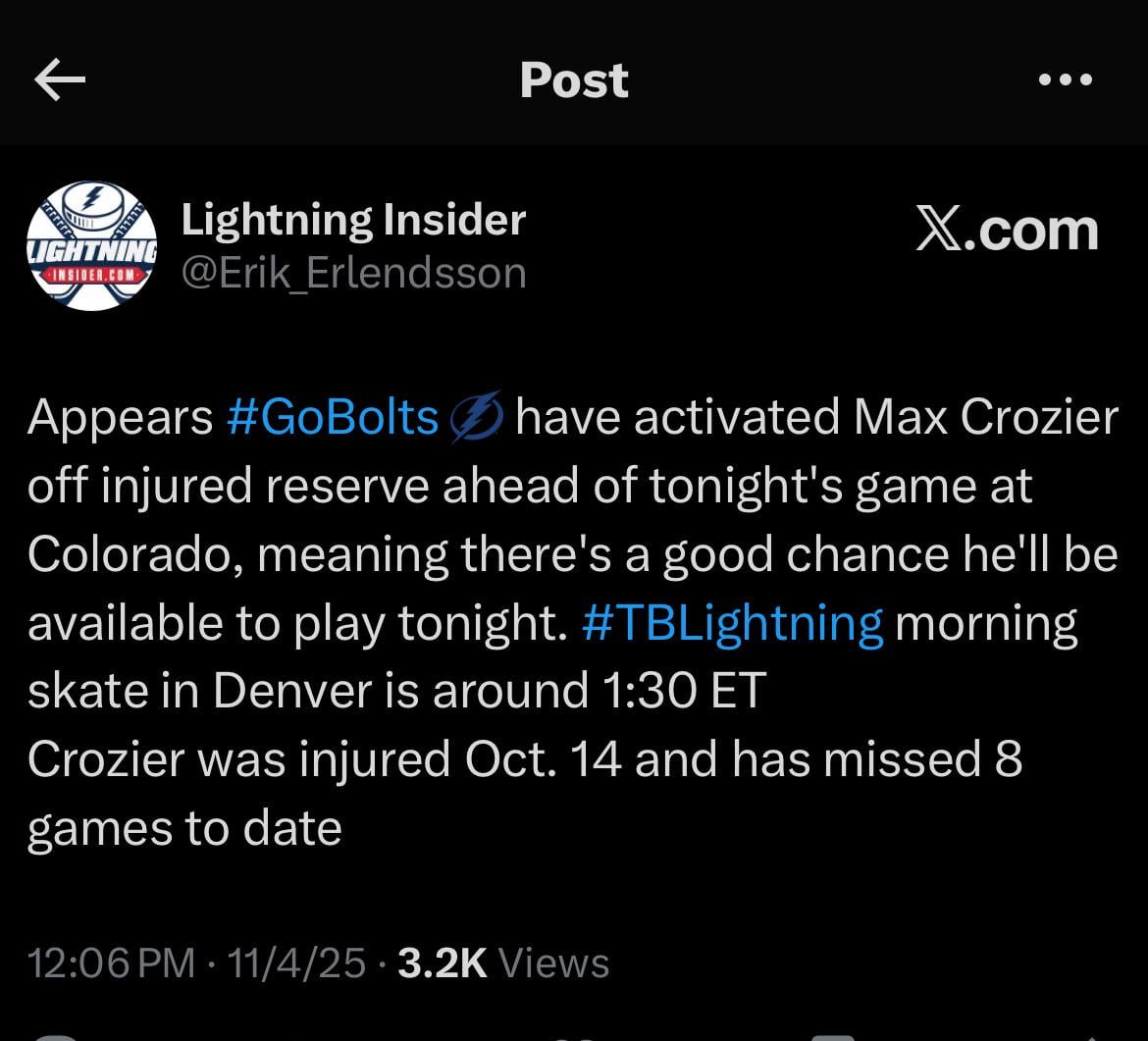 Crozier off IR 7 comments Replace lillberg pls, not D’A.. Nice would love to see him paired with D’Astous Yea it looked like his skate dug into the ice, was hoping it wasn’t that bad Starting someone off of injury against Colorado of all teams, when we’ve done well lately, is a kinda crazy decision. Known brick wall Maxwell Crozier is back. Put the league on notice What was the injury anyone have the info? Glad to see him returning, he showed solid positioning before the injury. If he can stay healthy, he’ll be a useful depth piece this season. Leave a ReplyYou must be logged in to post a comment.