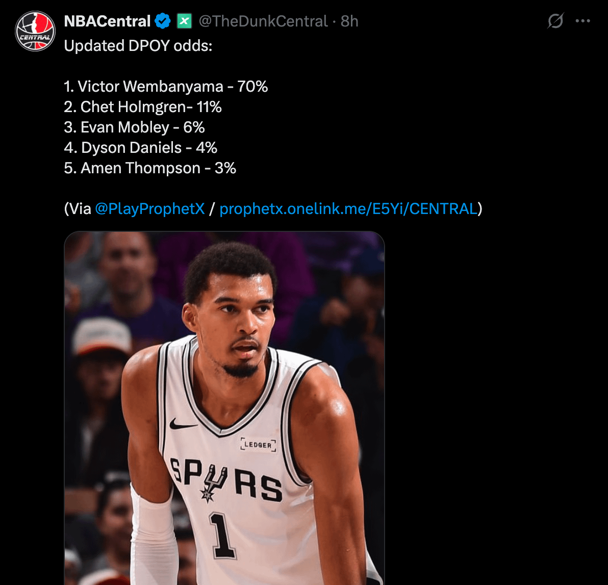 Wemby deserved DPOY as a rookie more than Gobert. Bam? Ok, why not? But the 4 guys on that meme are solid. I think the league is picking up on Miami as a sleeper but it’s too early for the standings to make it obvious.