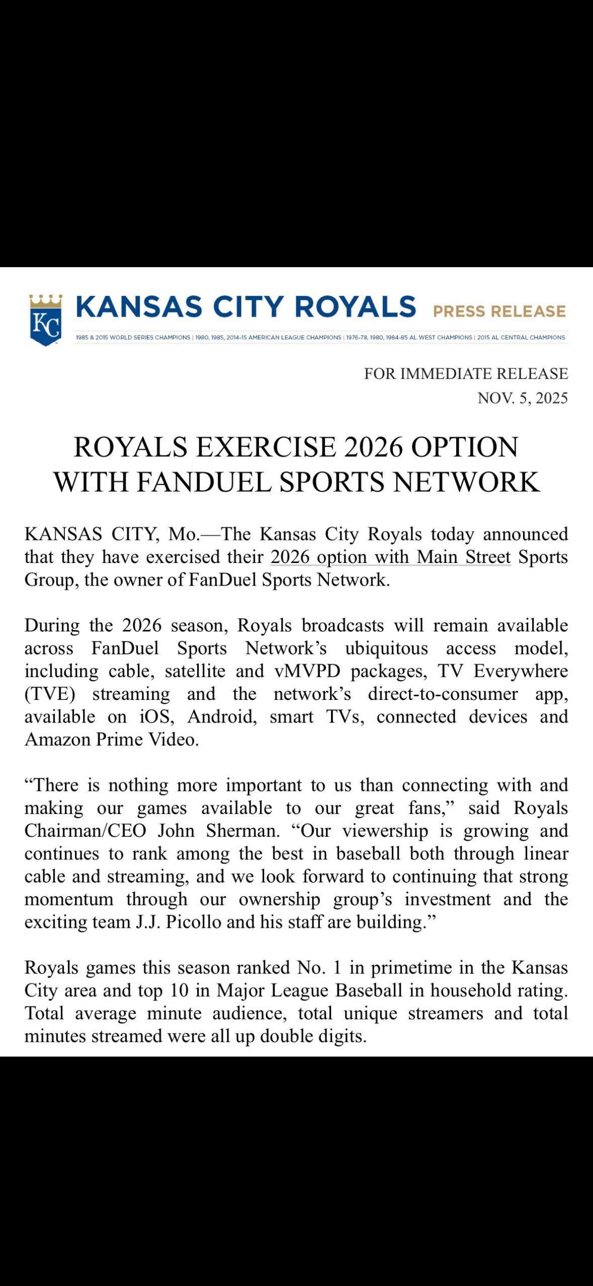 Fuck FanDuel, fuck their sports network, and fuck their obnoxious commercials that run during every ad break. MLB and teams like the Royals are going to kill casual interest in baseball by requiring people to pay to watch most games on TV instead of broadcasting them through OTA networks like every other major sports league in the US.