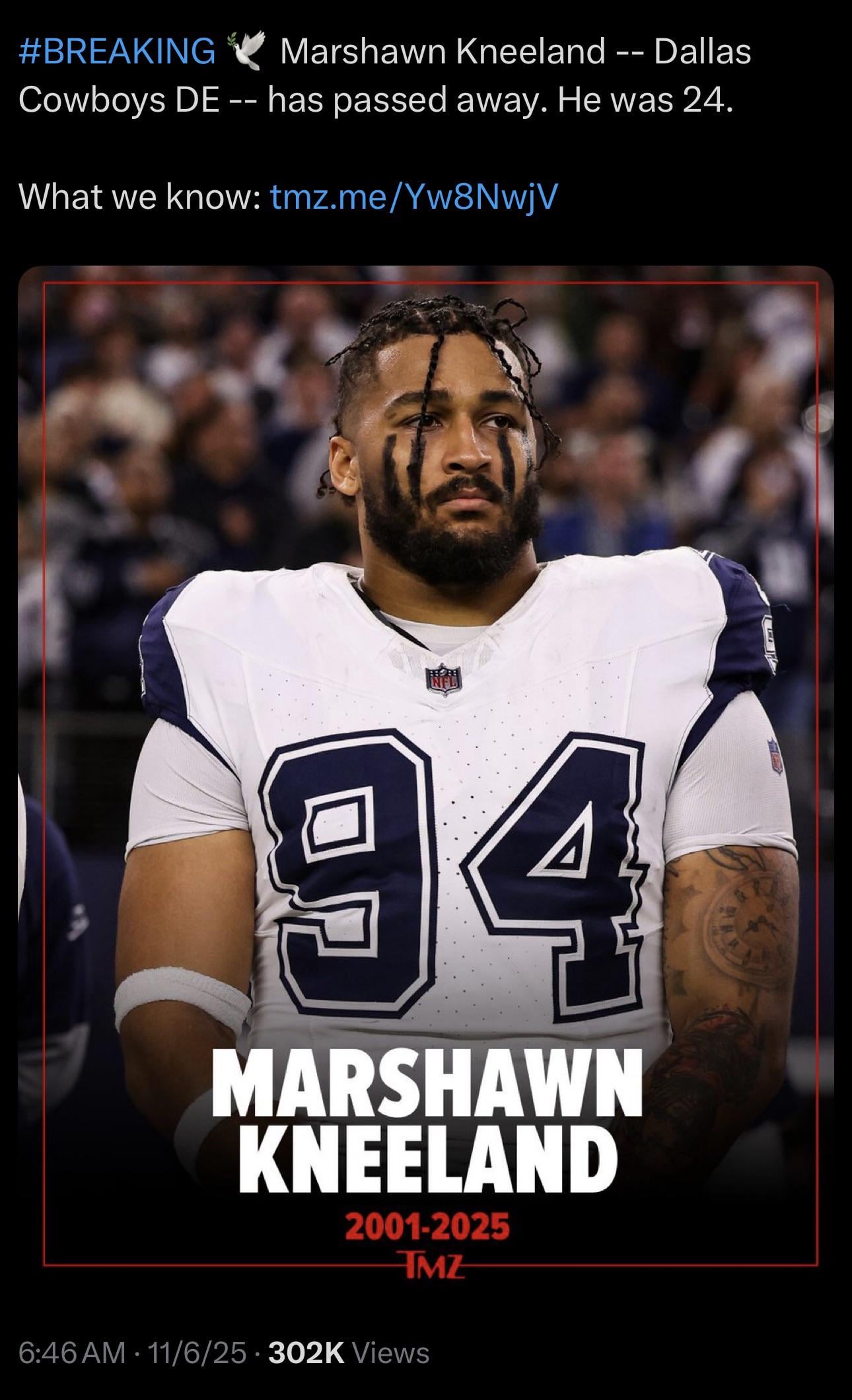 Hate the cowboys, not the players. Such a tragic loss, 2nd round pick, 24 years old, just scored a TD on Monday, must have felt like a million bucks. May his soul rest in peace and prayers to his loved ones.