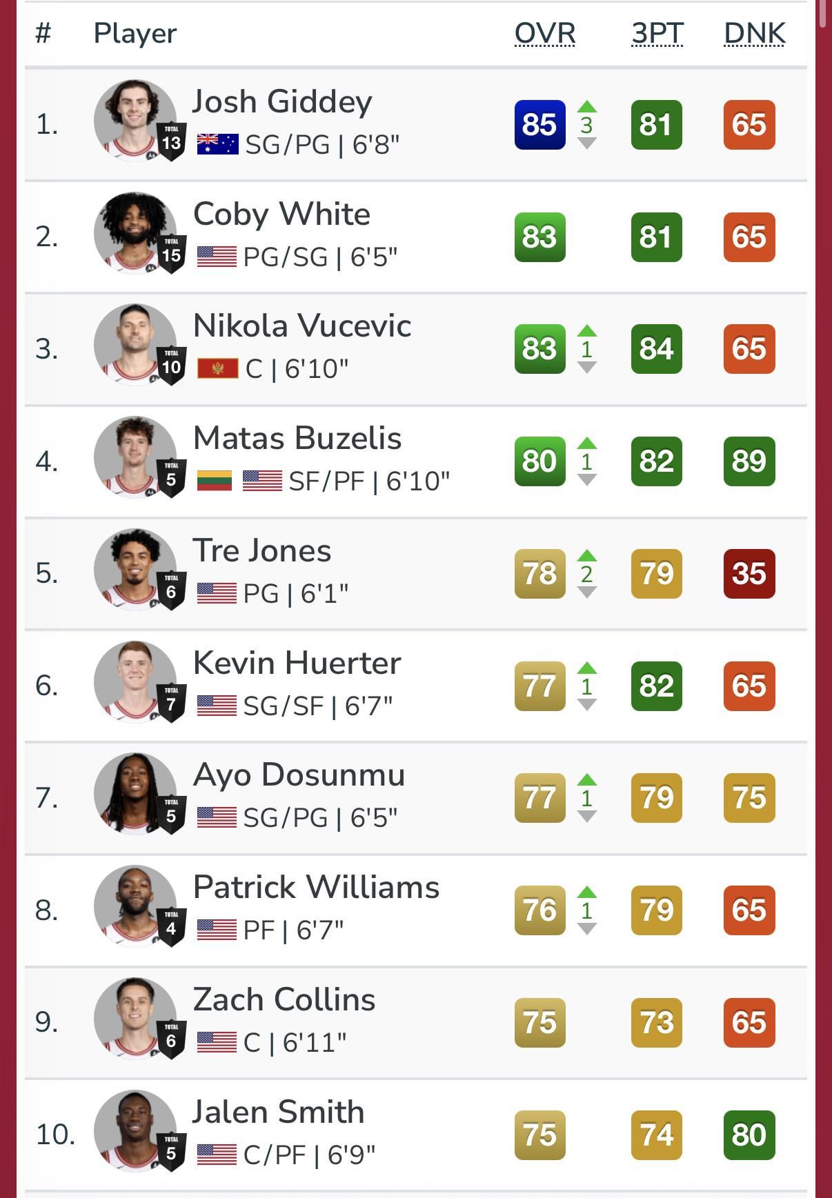 +1: Nikola Vucevic, Matas Buzelis, Kevin Huerter, Ayo Dosunmu, Patrick Williams
