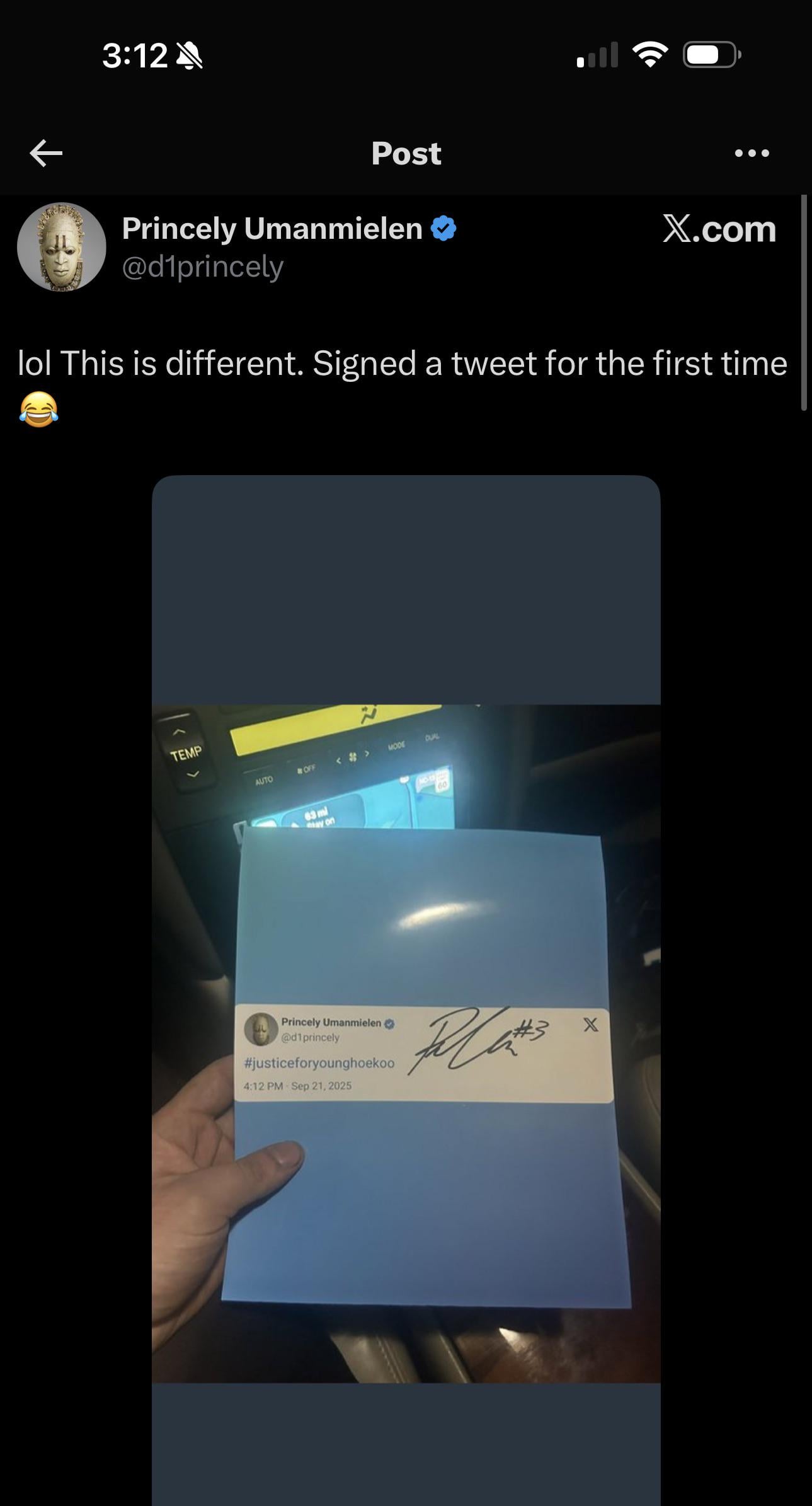 [Umanmielen] Princely signed a #justiceforyounghoekoo picture