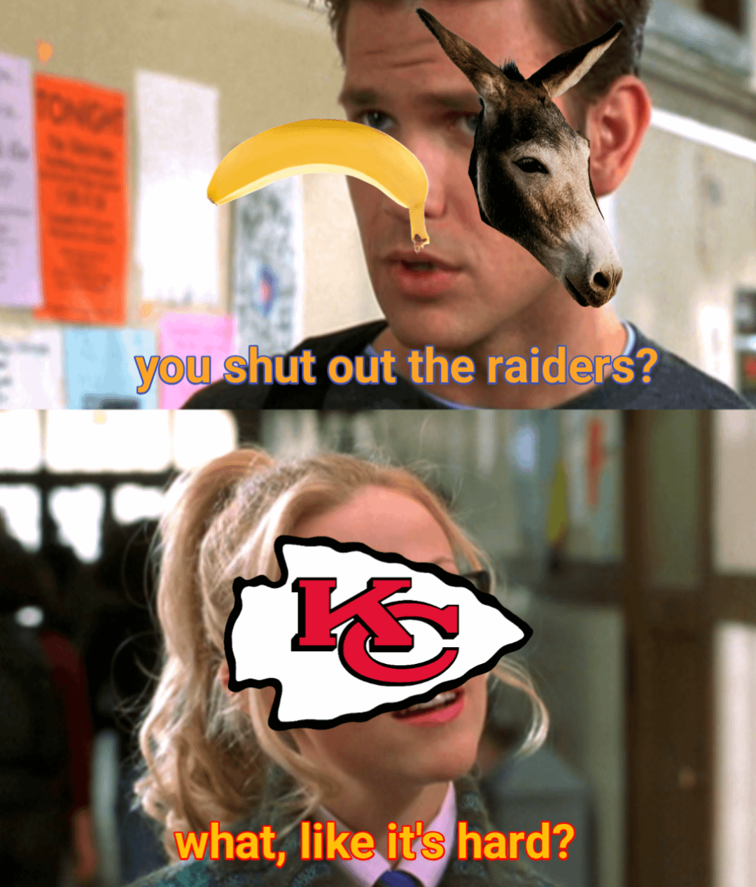 If anyone thinks the Chiefs are done for in terms of winning the division, you can chock the 2 Donkeys games up to wins which mean we’ll be 7-4 and they’ll be 8-4 without any other games being played.
