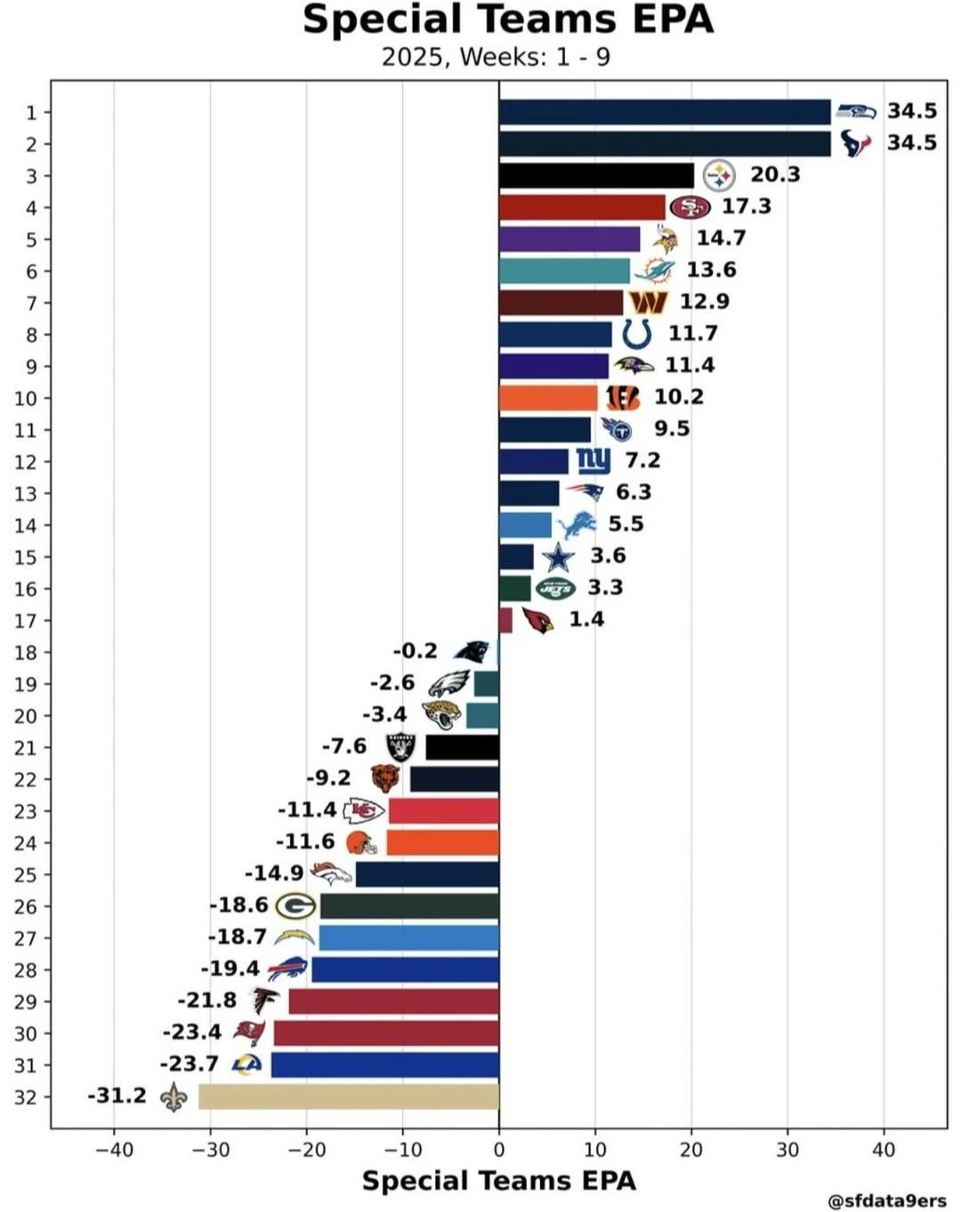 1. Best defense and special teams in the nfl. If we just had a semi-functional offense we’d be lethal.