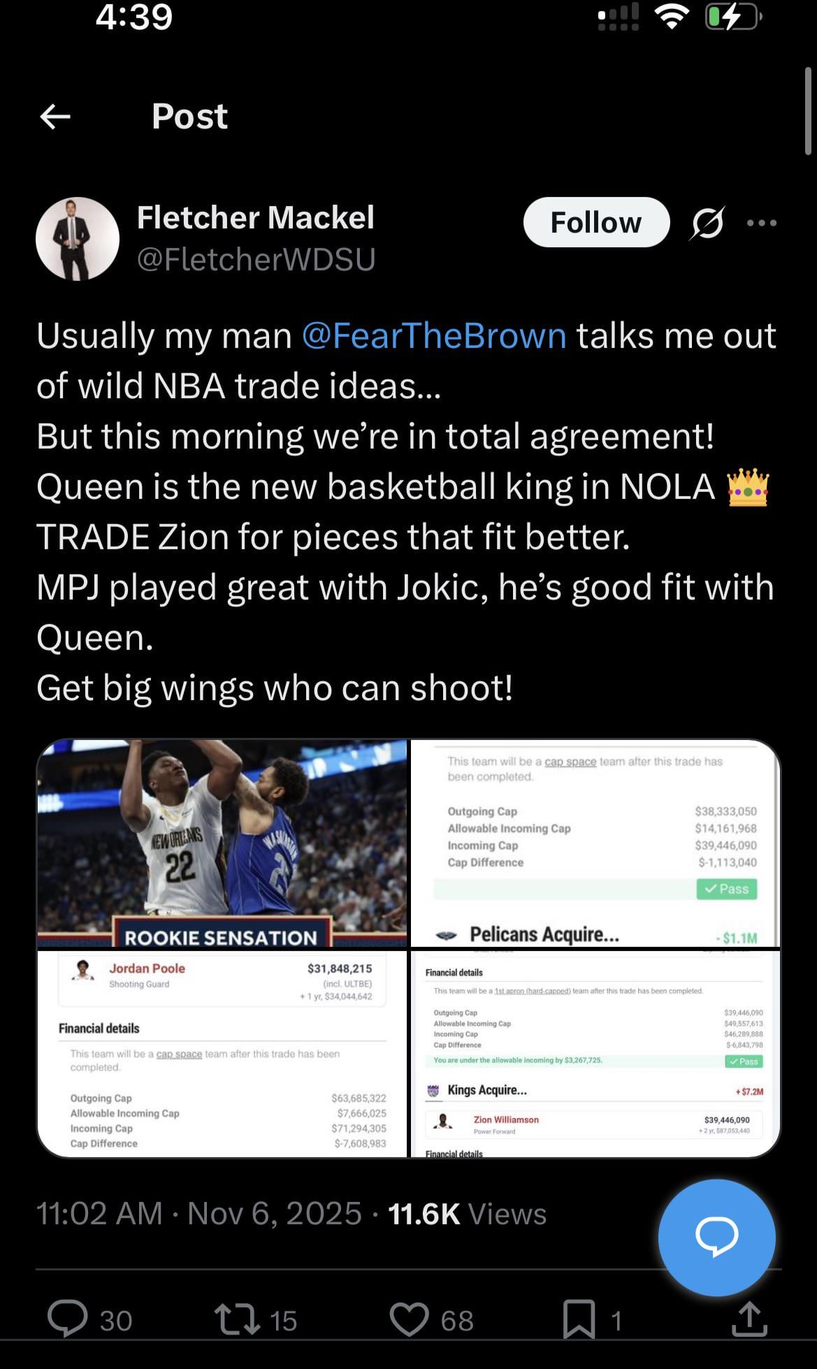 I’ve been beating the drums that I want to move on from Zion for about 2 years, but local media are starting to pick up the take as well. There’s still plenty of people that disagree and I note that, but I haven’t seen this much steam for the trade Zion take since we had the great BI Stan vs. Zion Stan war. Also, the trade ideas in that post are actual genuine 100% dogshit 😭