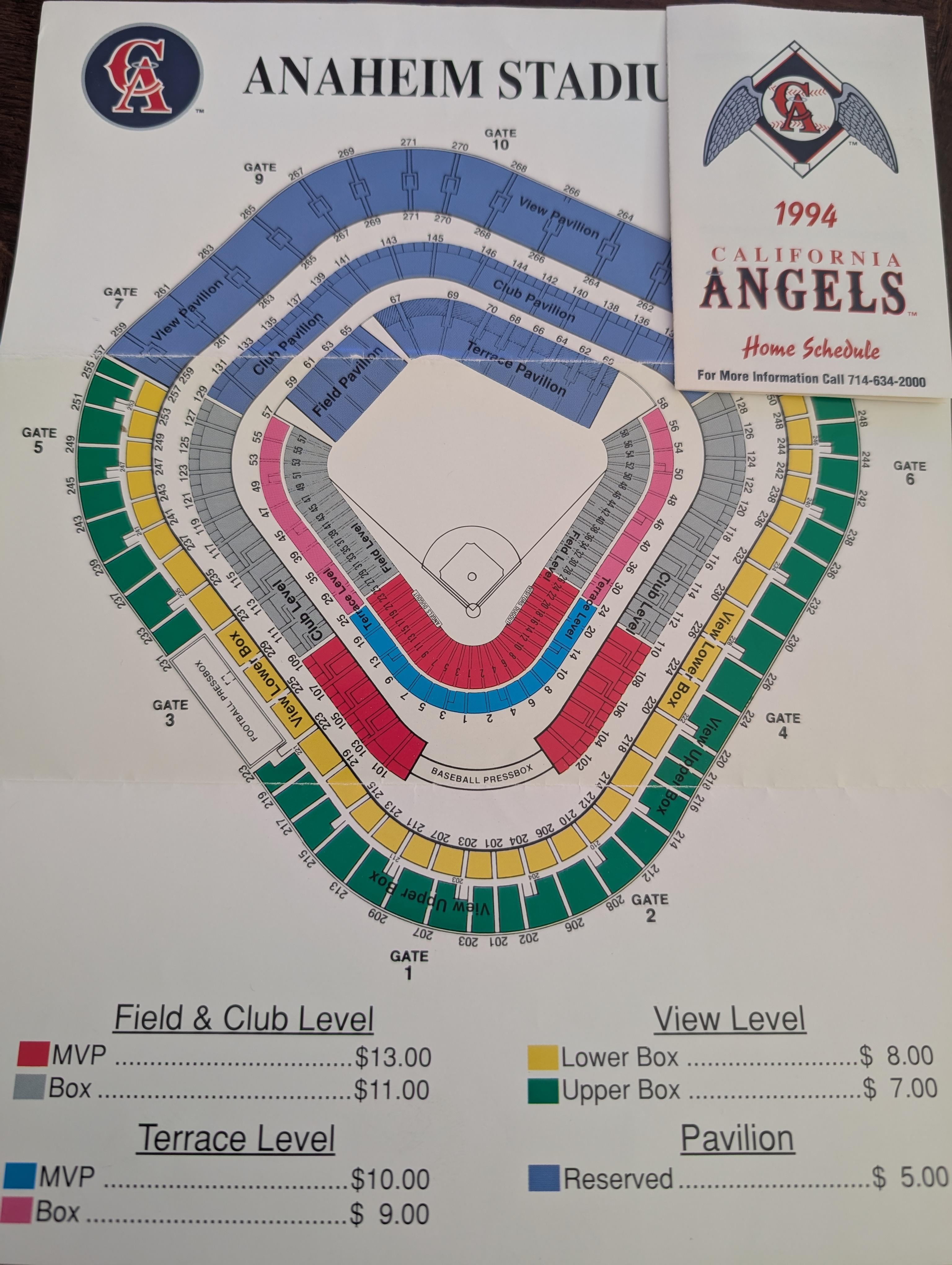 My dad found this in a pile of old stuff. Look at those ticket prices! 7 comments Used to sit in those view seats for 20-30 games a season and then meet up with my friends to party. Ahhh, the late 80’s. Can still get tickets in the bleeds for not much more than that! Especially when the Angels are in mid season form $13 in 1994 has the same “purchasing power” or “buying power” as $28.42 in 2025. Interesting… Honestly, if you were to do this for every MLB team, I think the Angels would be the LEAST outrageous difference.  94 was the lockout season so you would have just gotten a refund lol The last year the Rams played there! Leave a ReplyYou must be logged in to post a comment.