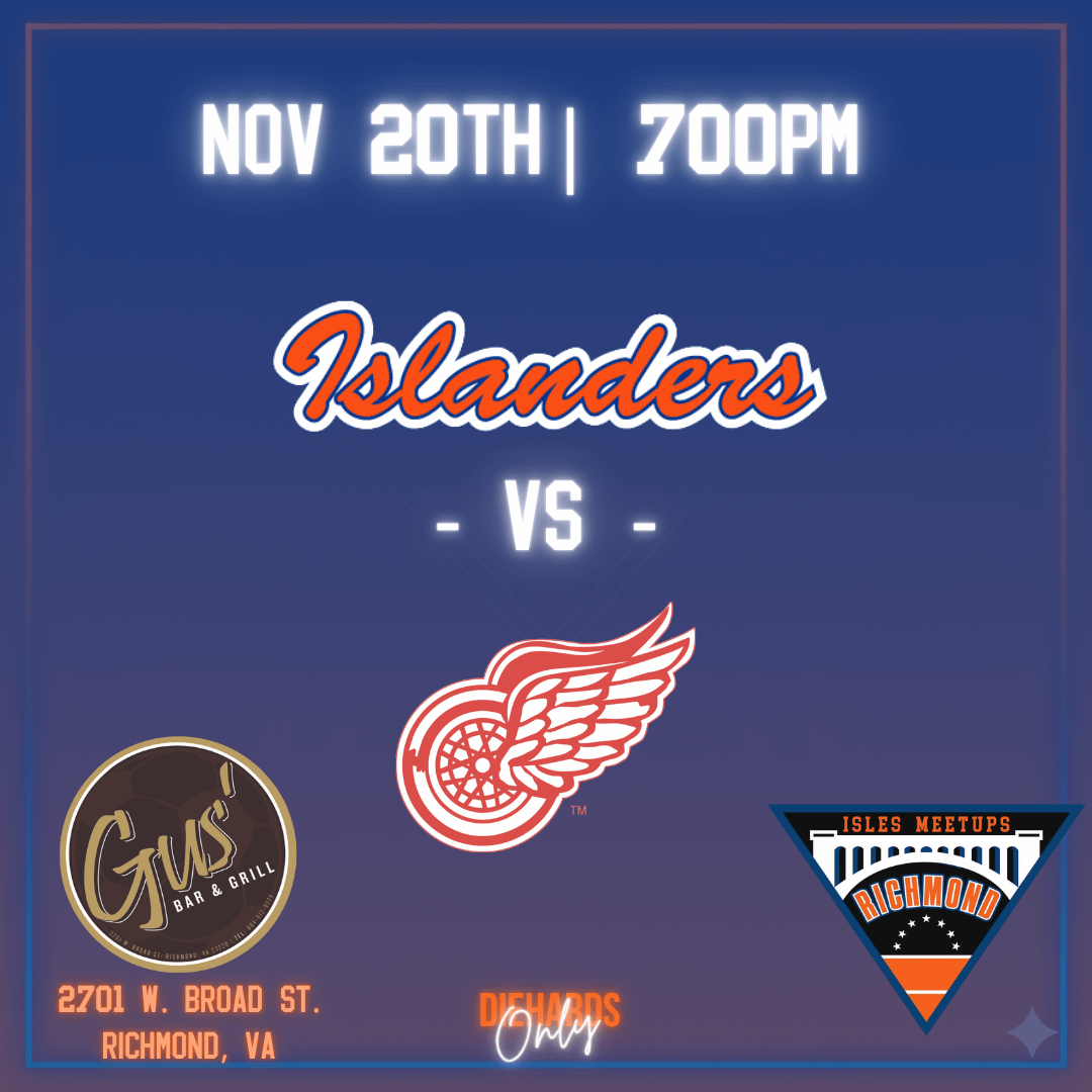 We'll be having our November meet-up here in Richmond VA on November 20th. Having some fun watching Isles hockey together at Gus' Bar & Grill 1 comment I’m not an islanders but this is awesome. Have fun fellas. Leave a ReplyYou must be logged in to post a comment.