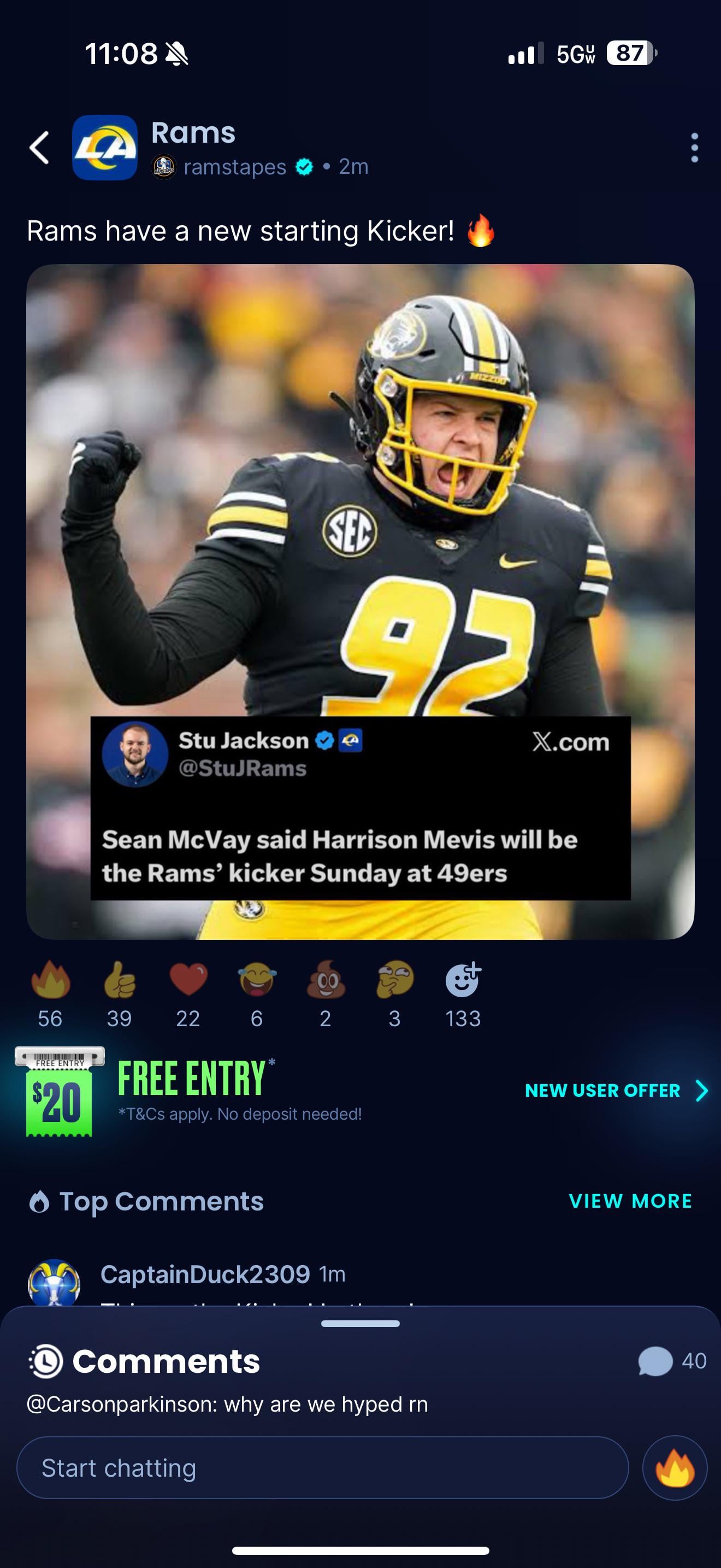 As a mizzou rams fan this outcome will be amazing IF he ends up being serviceable, we don’t even need GOOD but serviceable will be fine. Just make the kicks that all NFL kickers are supposed to make, anything 55+ idc what happens but if we can’t hit the easy ones to get points on the board we are not going to be a contender