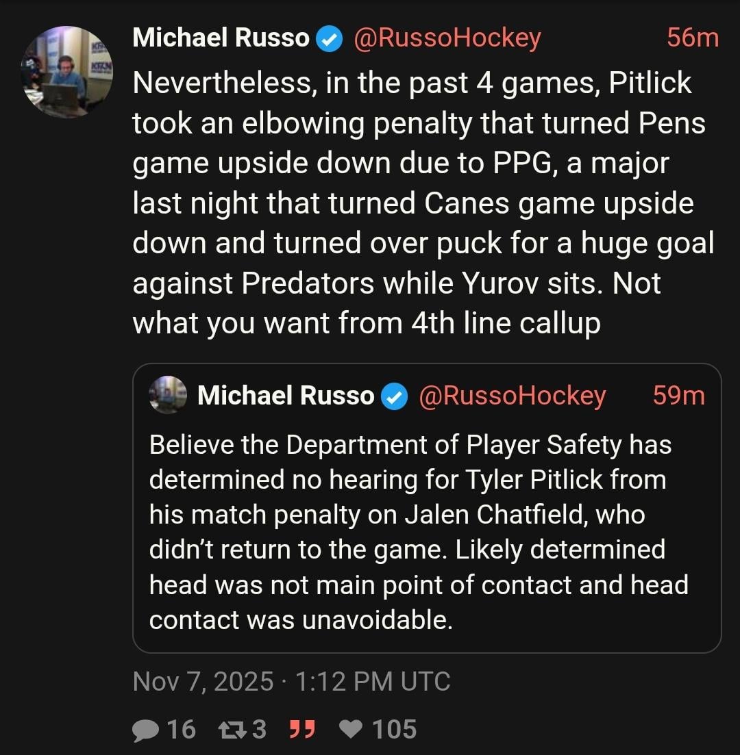 I didn’t think initial contact was to the head.The guy’s three feet of hair flying all over the place made it look way worse than it was. I also think when a player is mugged after a hit he shouldn’t get a fighting penalty for defending himself. So the league is basically saying the hit was clean and the refs screwed up by calling the major and match.